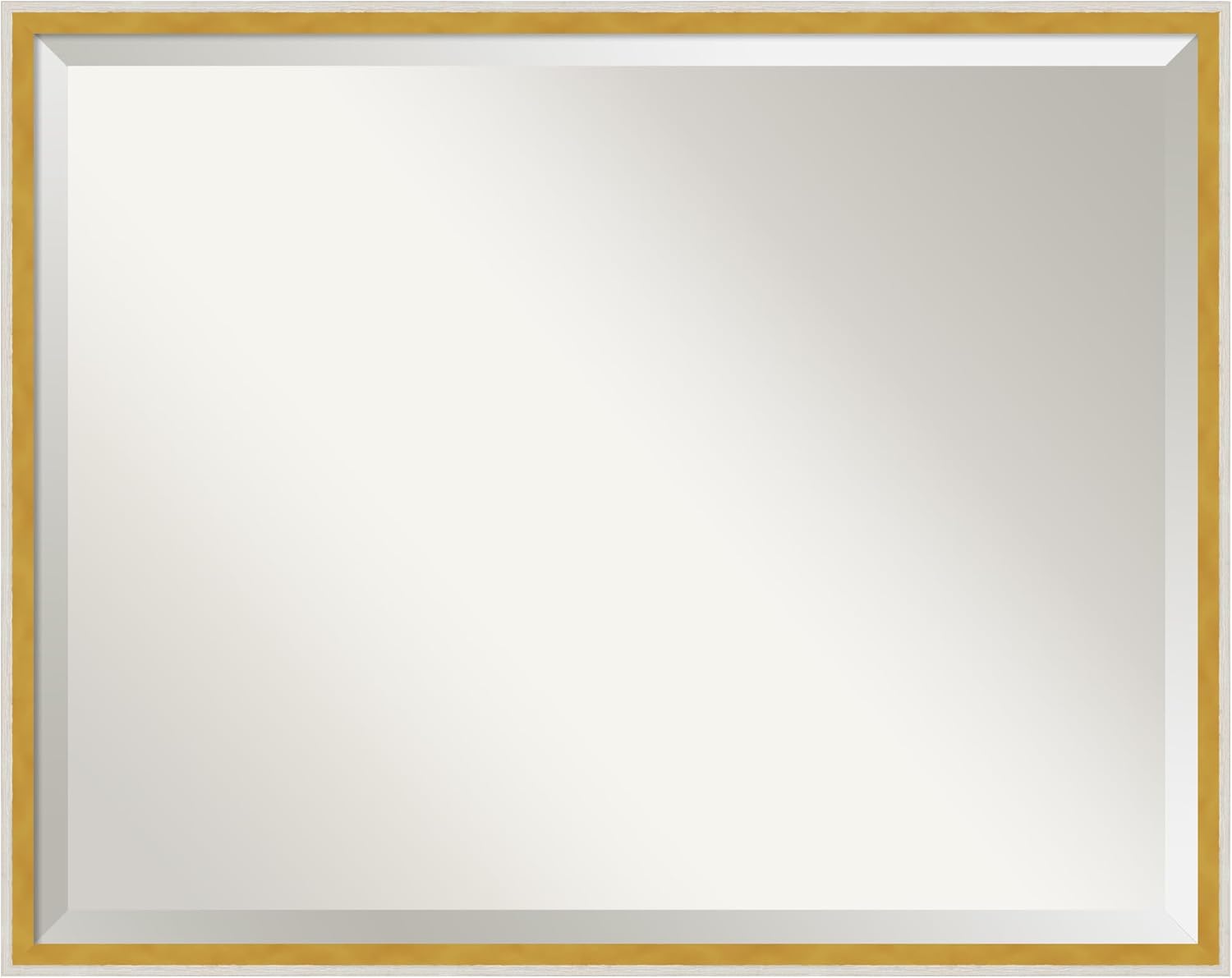 Amanti Art White Bathroom Mirror for Over Sink, 23x29 Paige White Gold Rectangle Vanity Mirror, Large Modern Contemporary Wood Frame, Hangs Horizonally and Vertically, Bathroom Wall Decor, Beveled