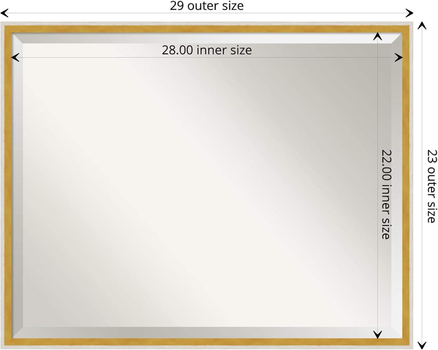 - MIRROR DETAILS: This mirror features premium glass for a clear, undistorted image and is finished with a beveled edge to give the glass a decorative touch. The overall size of this bathroom mirror measures exactly 29 x 23 inches, including the frame. Its reflective area measures 28 x 22 inches.