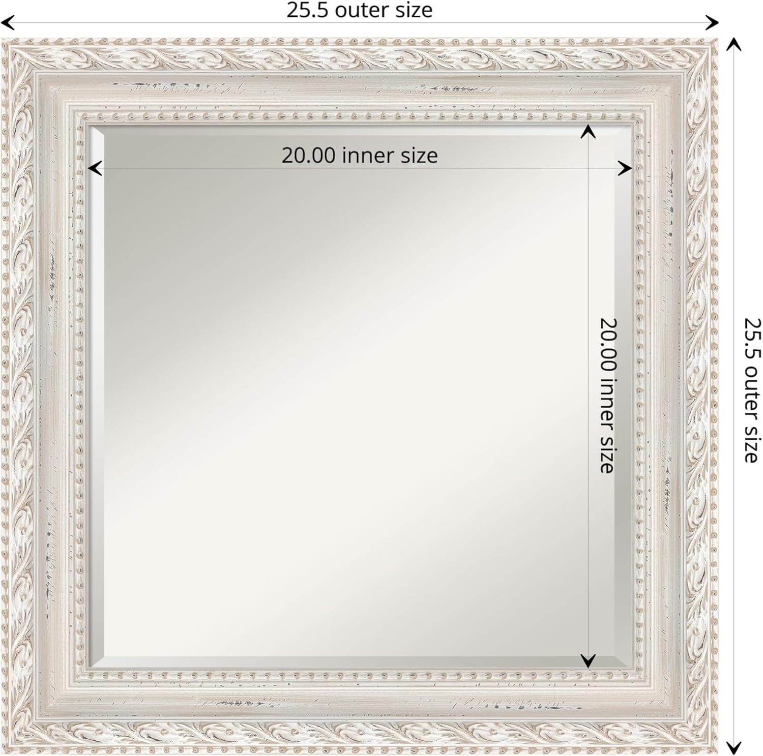 - MIRROR DETAILS: This mirror features premium glass for a clear, undistorted image and is finished with a beveled edge to give the glass a decorative touch. The overall size of this bathroom mirror measures exactly 25.5 x 25.5 inches, including the frame. Its reflective area measures 20 x 20 inches.