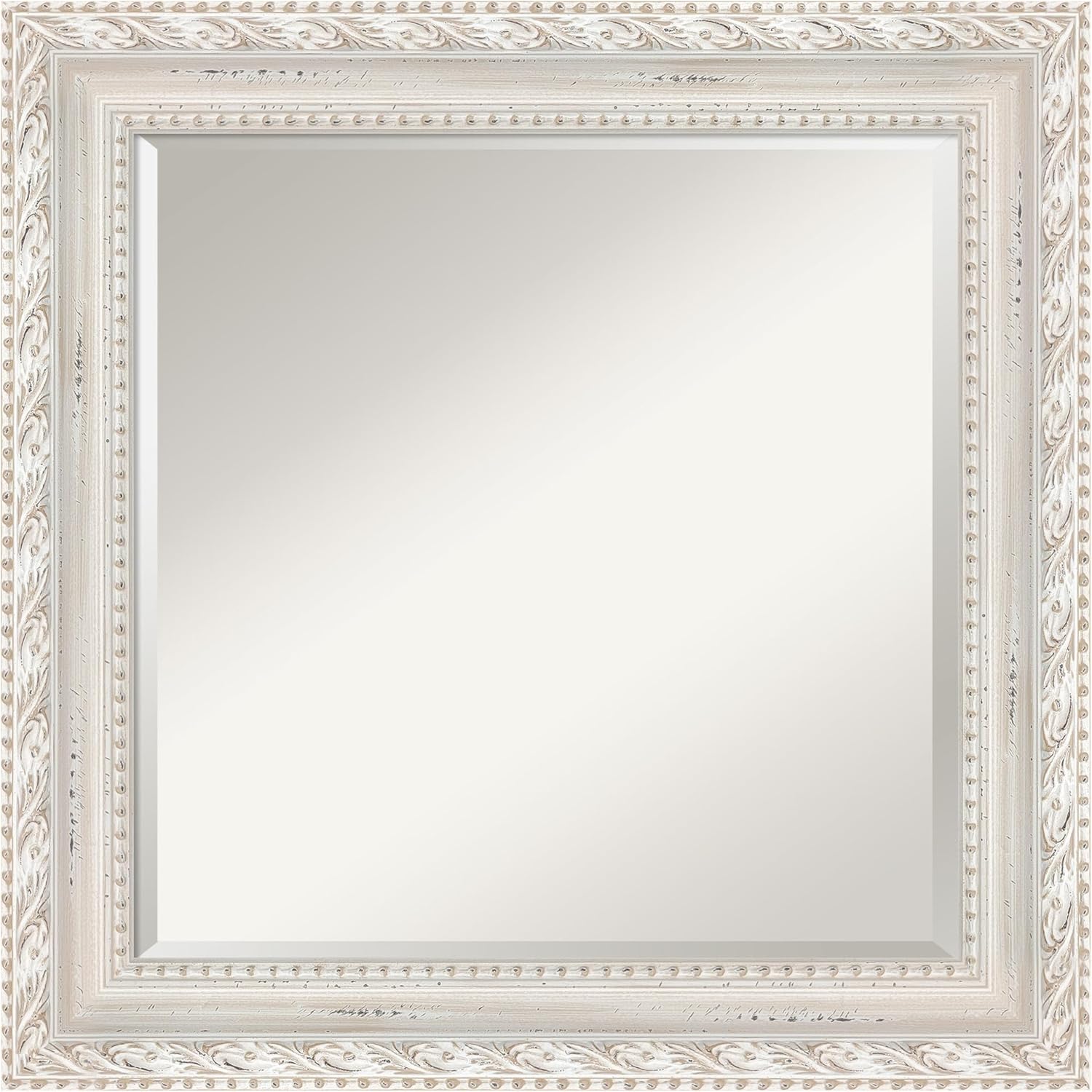 Amanti Art White Bathroom Mirror for Over Sink, 26x26 Opera Off White Square Vanity Mirror, Medium Traditional Wood Frame, Hangs Horizonally and Vertically, Bathroom Wall Decor, Beveled Edge from WI