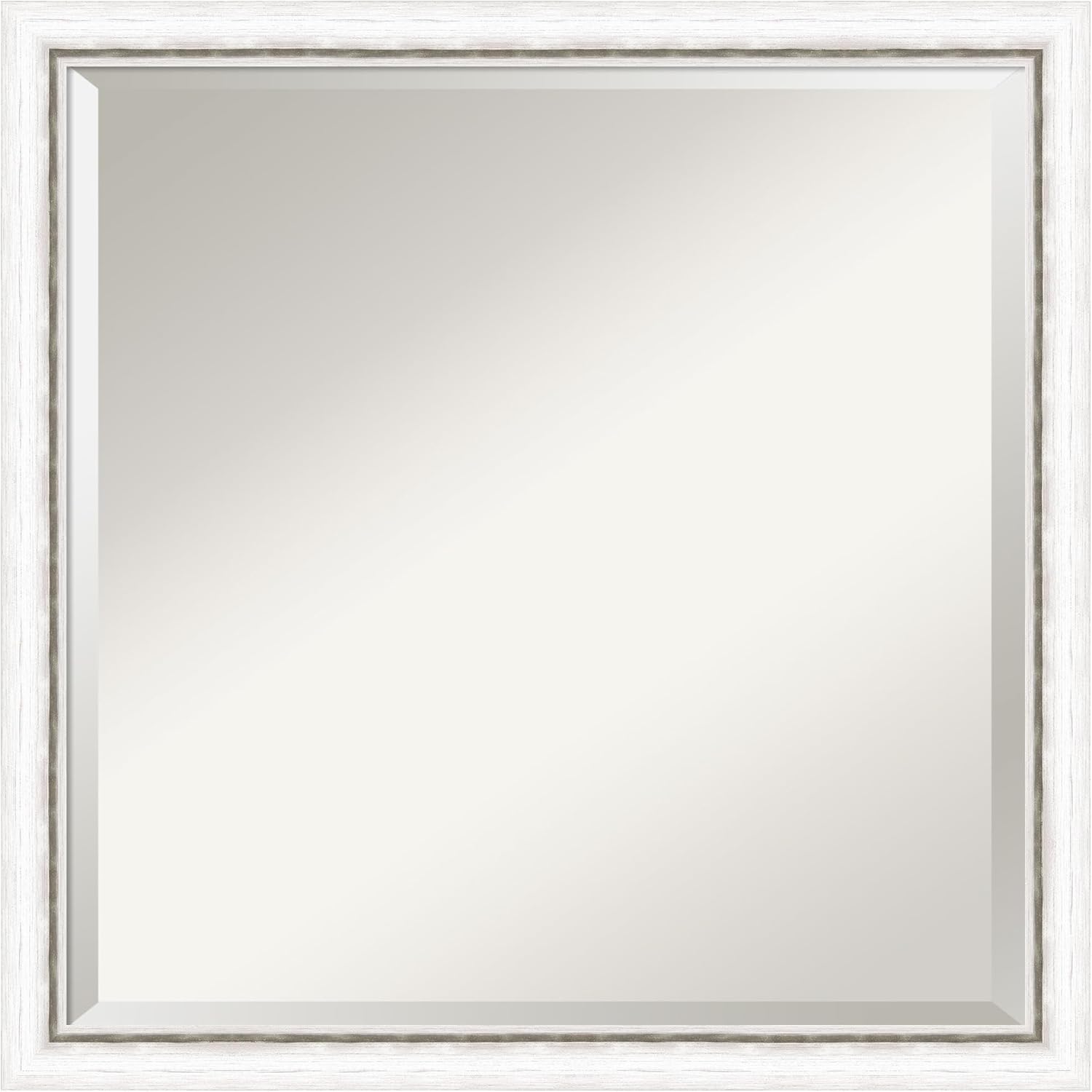 Amanti Art White Bathroom Mirror for Over Sink, 22x22 Morgan White Silver Square Vanity Mirror, Medium Modern Contemporary Wood Frame, Hangs Horizonally and Vertically, Bathroom Wall Decor, Beveled