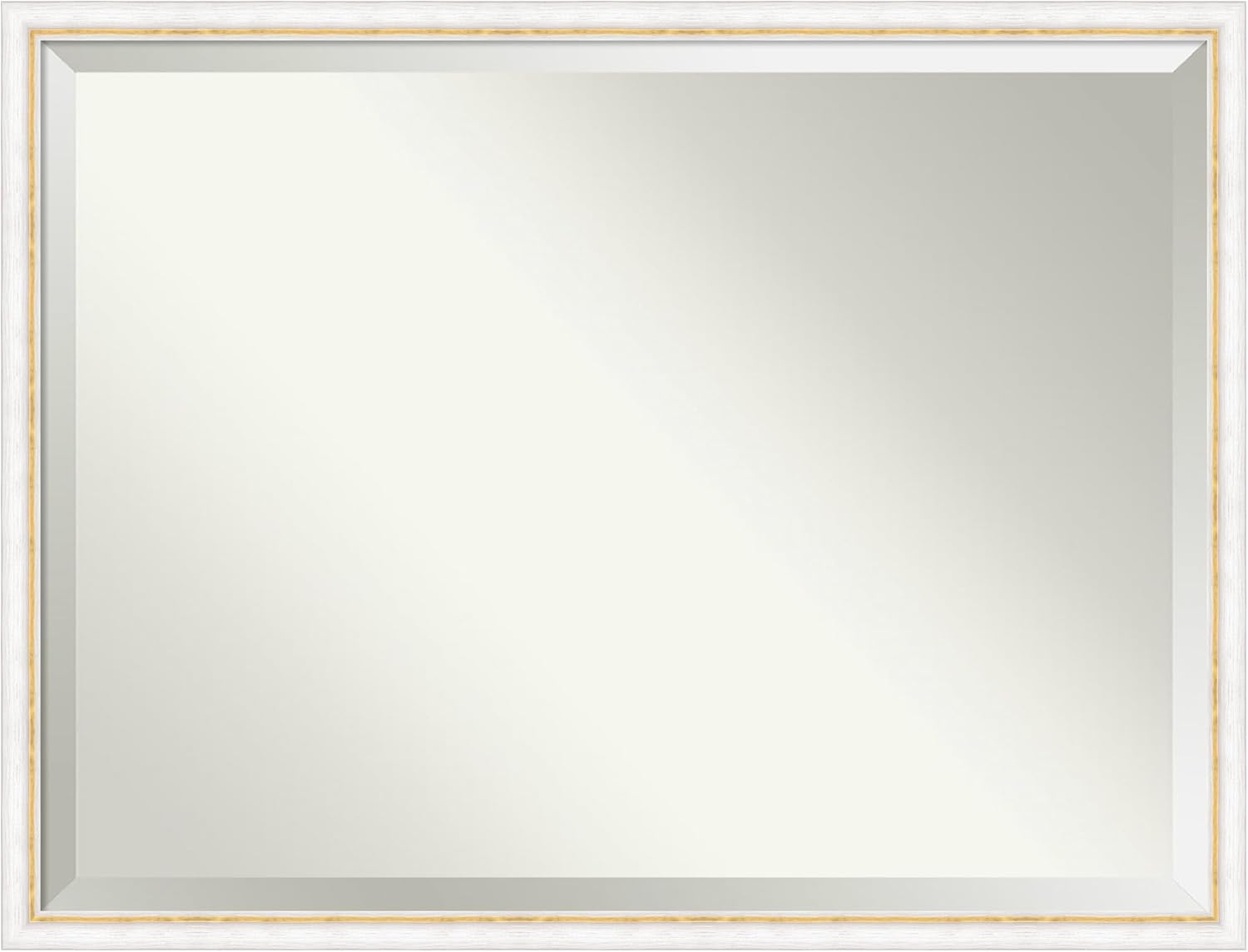 Amanti Art White Bathroom Mirror for Over Sink, 32x42 Morgan White Gold Rectangle Vanity Mirror, X-Large Modern Contemporary Wood Frame, Hangs Horizonally and Vertically, Bathroom Wall Decor, Beveled
