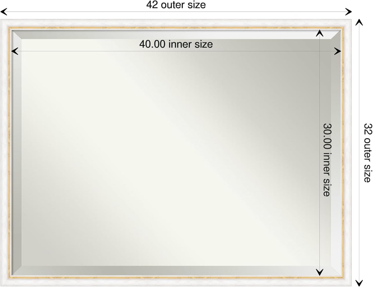 - MIRROR DETAILS: This mirror features premium glass for a clear, undistorted image and is finished with a beveled edge to give the glass a decorative touch. The overall size of this bathroom mirror measures exactly 42 x 32 inches, including the frame. Its reflective area measures 40 x 30 inches.