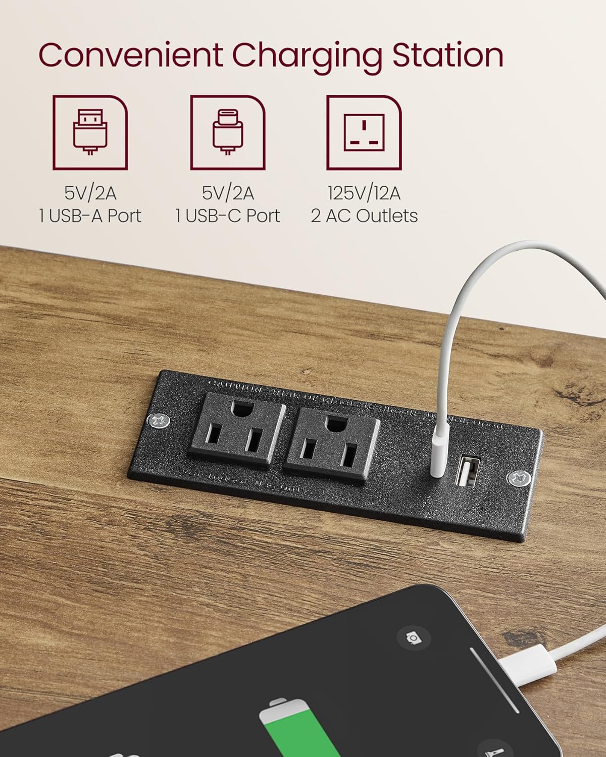 - [Convenient Charging Station] Stay away from low battery alerts with our nightstand's built-in charging station. It includes 1 USB-A port, 1 USB-C port, and 2 AC outlets, providing a handy power source for your devices