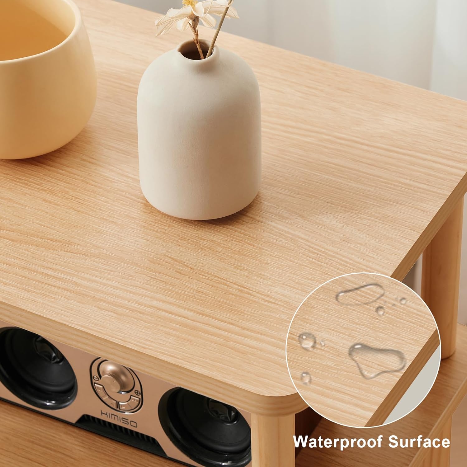 Apicizon 3 Tier End Table, Record Player Stand with Storage Shelf, Wooden Vinyl Record, Nightstand Bedside Table for Small Spaces, Bedroom, Living Room, Easy Assembly, Natural