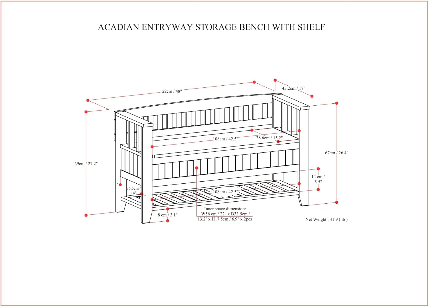 - Style Storage Bench with Shelf : Item Weight 41.9 Pounds