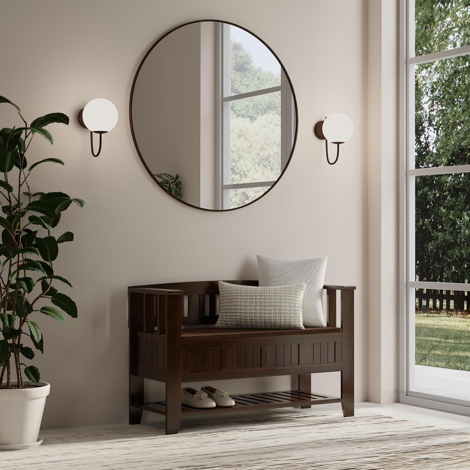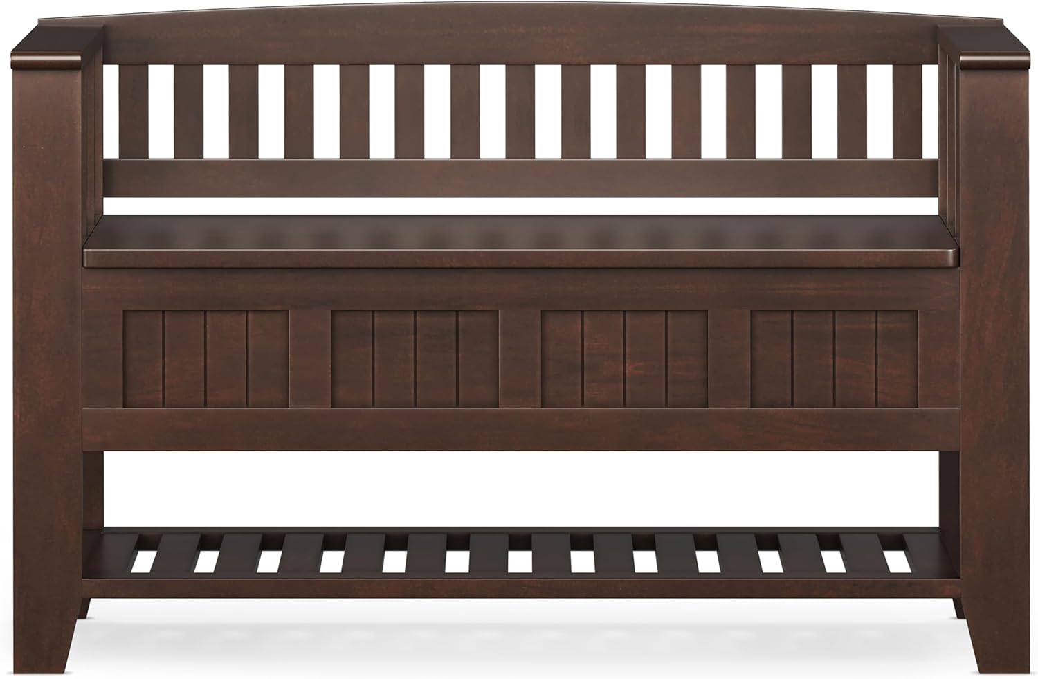 SIMPLIHOME Acadian Entryway Storage Bench - 48 inch Wide Solid Wood Hallway Seat with Shelf in Brunette Brown, Transitional Bench for Entryway or Living Room with Open Storage and Slatted Bottom