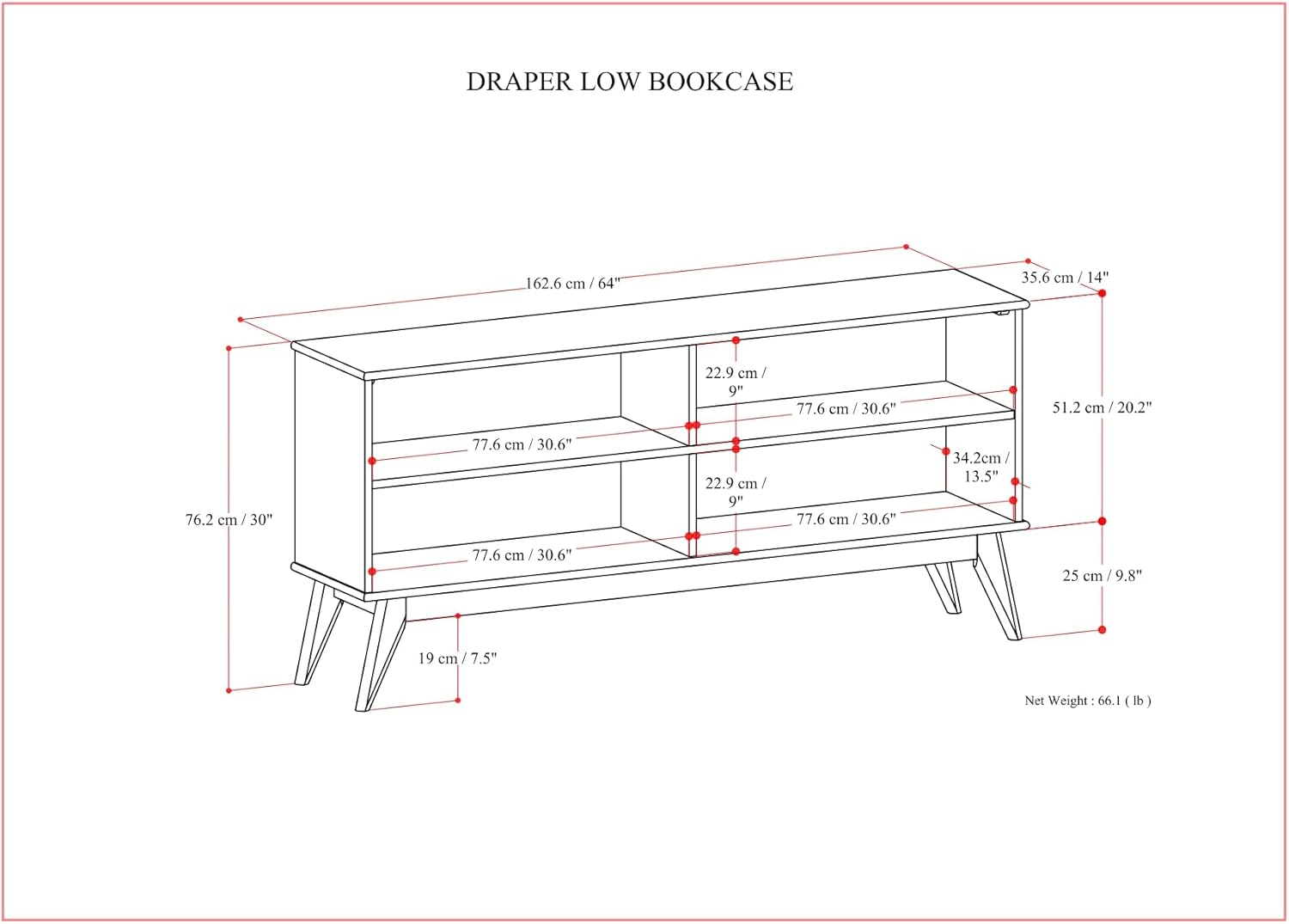 SIMPLIHOME Draper Bookcase - 30 inch Tall Solid Hardwood Low Bookshelf in Teak Brown, Mid-Century Modern Storage for Living Room, Study Room or Office with Tapered Legs and Wide Open Shelves