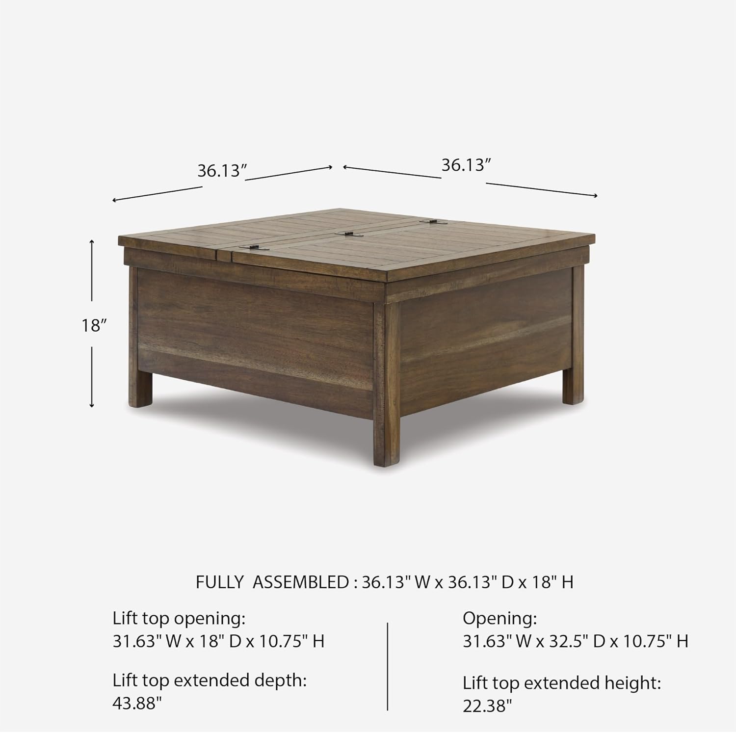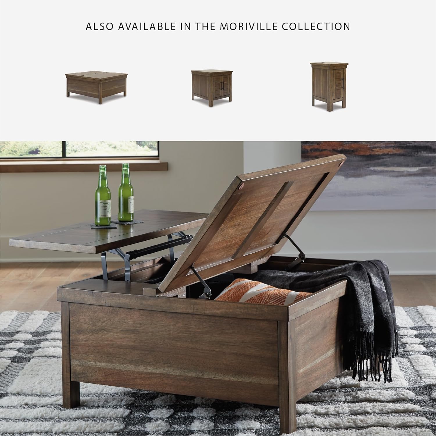 Signature Design by Ashley Moriville Rustic Hinged and Lift Top Cocktail Table with Hidden Storage, Light Brown