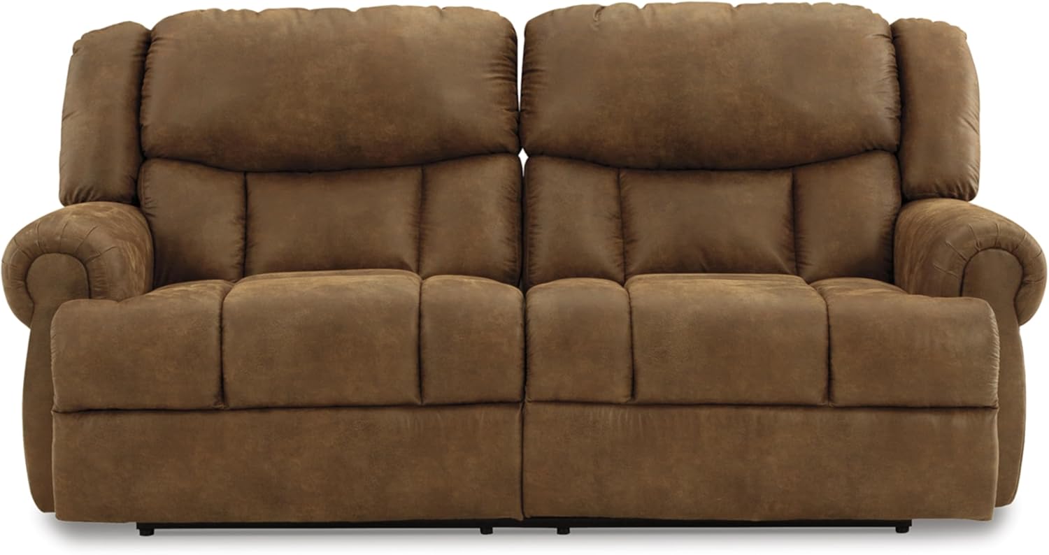 Signature Design by Ashley Boothbay Classic Faux Leather 2 Seat Manual Reclining Sofa, Dark Brown