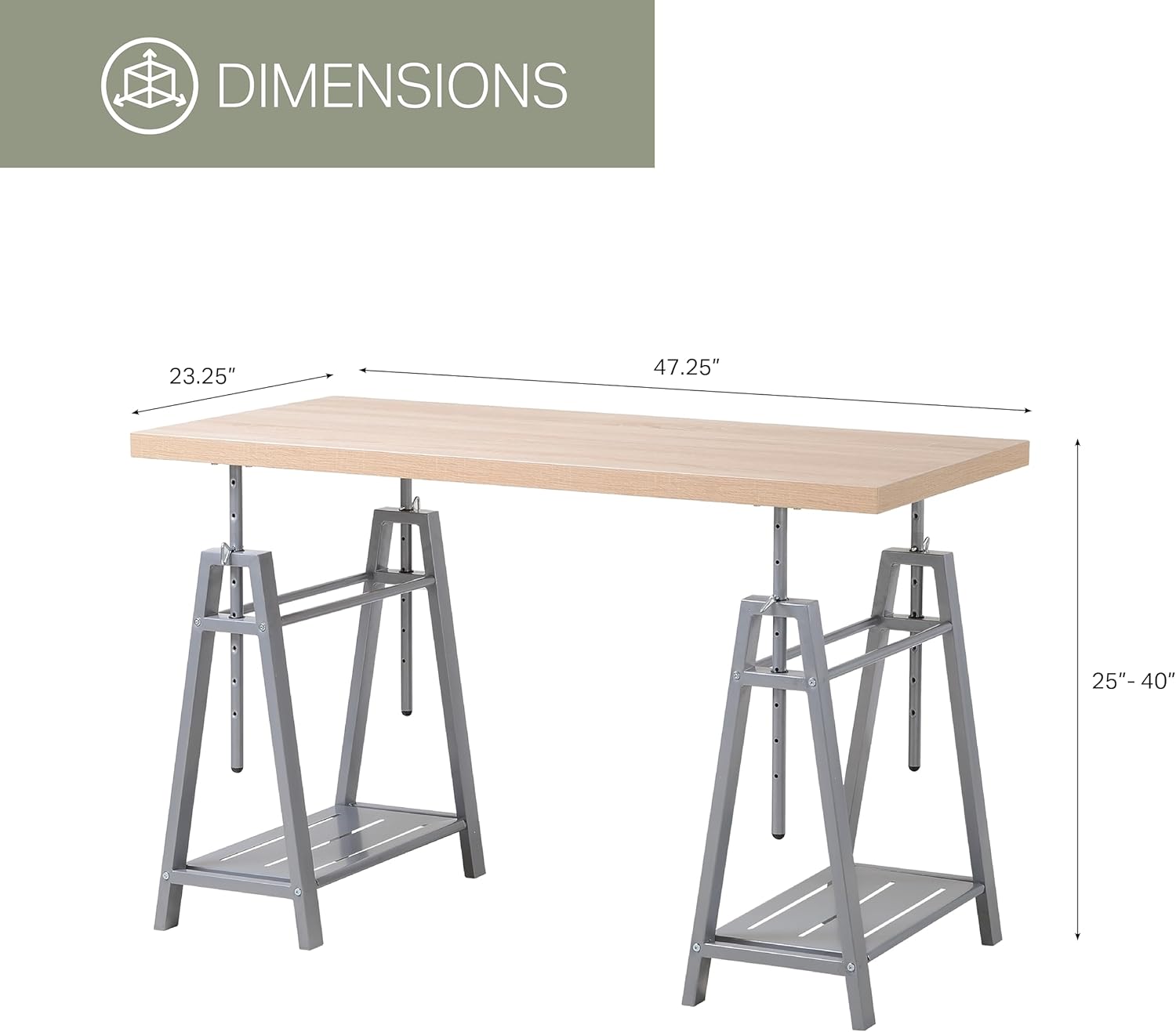 - Adjustable - this desk ranges in height from 25" to 40", with 9 different height positions available.