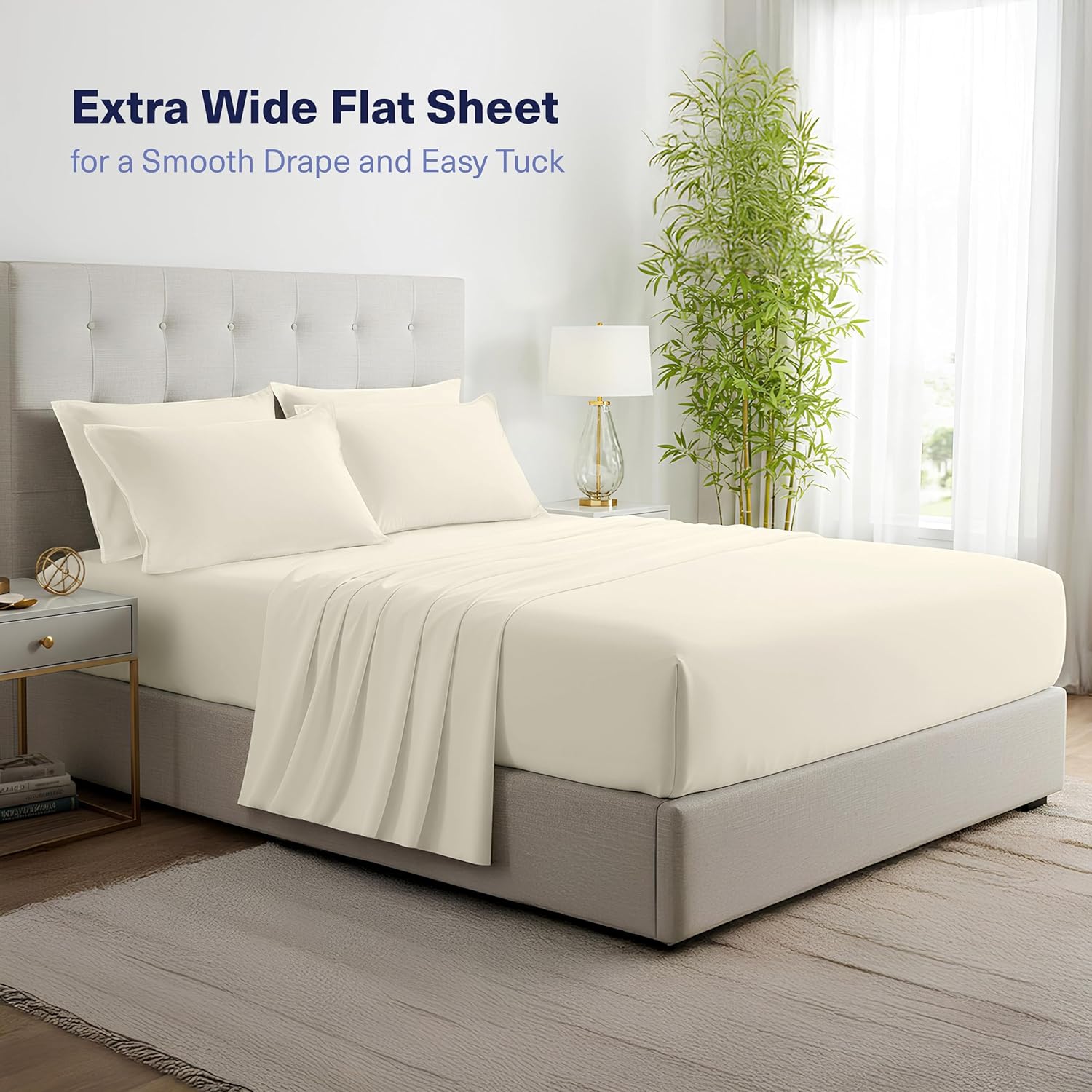 Kickoff Viscose Bamboo Sheets Full Size 4-pc 100% Organic Bamboo Viscose Bed Cooling Sheets Full Size Set Cool Bedding for hot Sleepers Sheet, Flat, Fitted, Pillowcases (Buttercream, F)