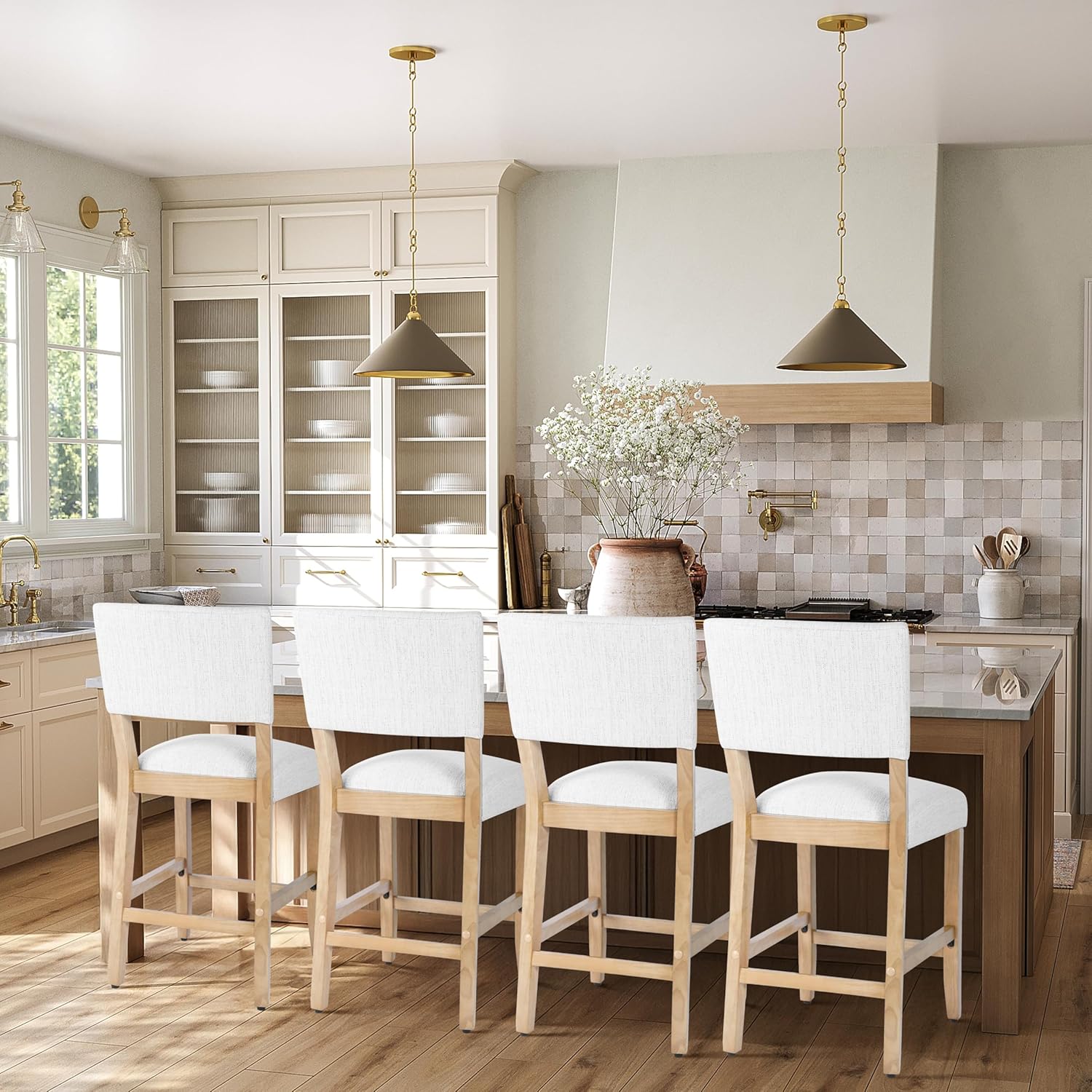 HomePop 24" Open Back Counter Stool Home Décor|Fabric Chairs for Dining Room, Kitchen and Living Room - Stain Resistant White Woven(Single Pack)