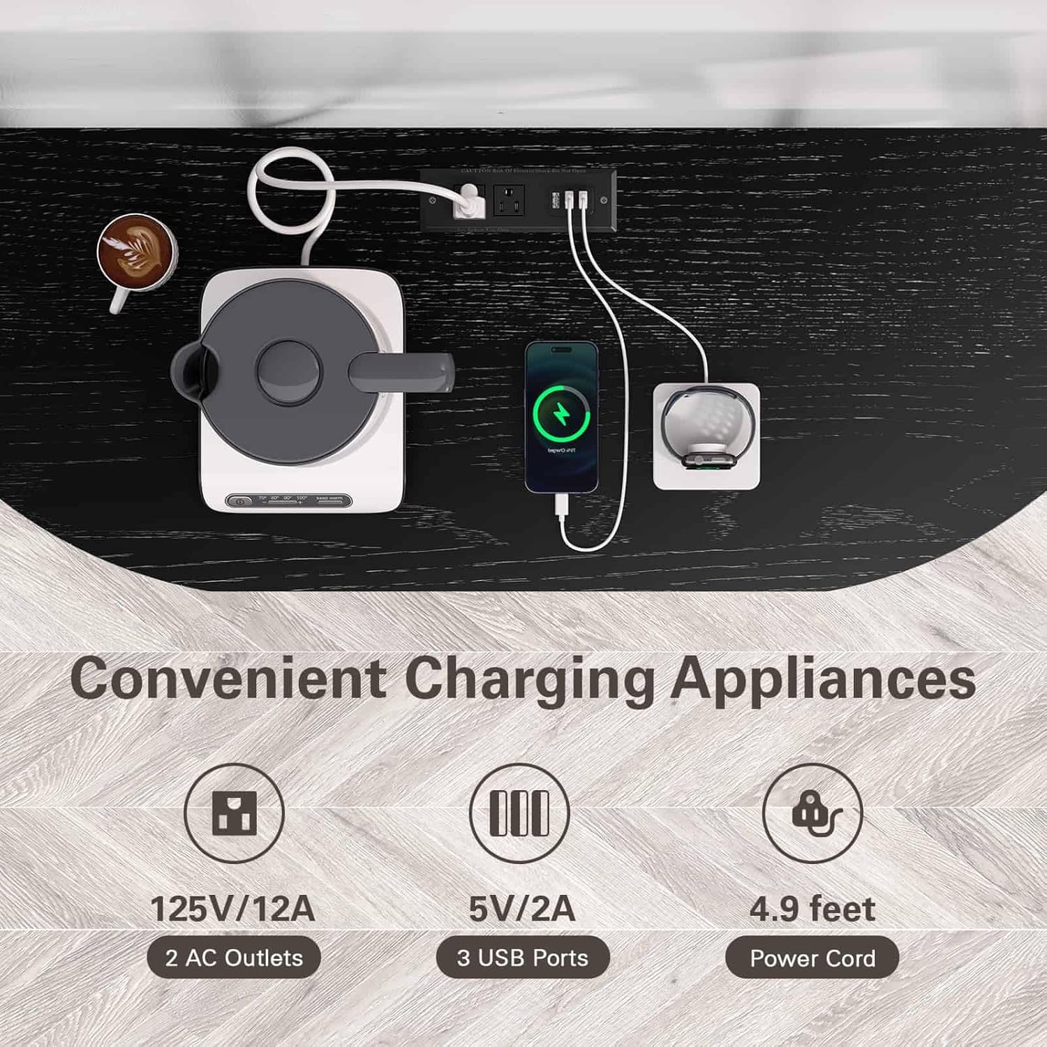 - 【Convenient Charging Sockets】: The wine bar for home comes with a built-in power outlet, which features 2 AC plugs and 3 USB ports. This makes it convenient for holding kitchen appliances and connecting them easily.