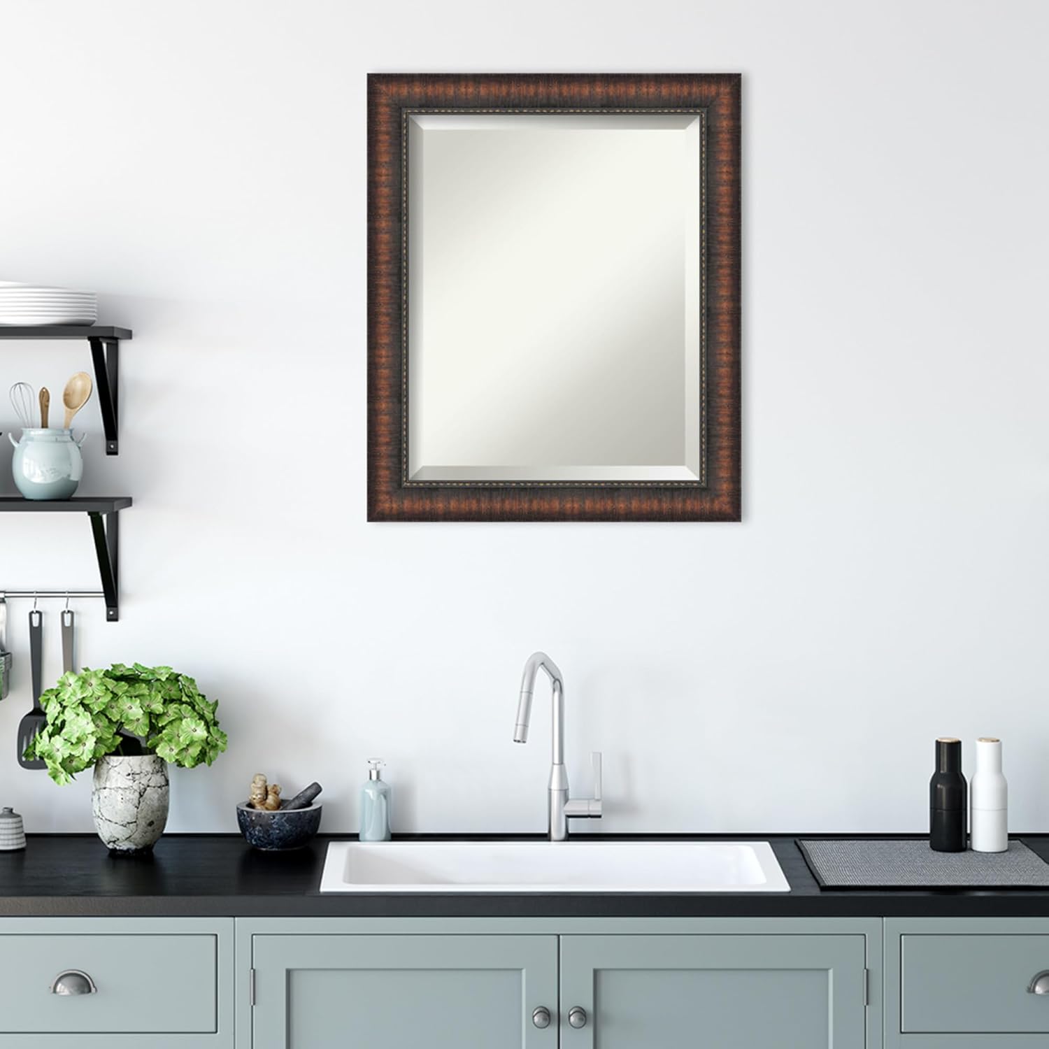 Amanti Art Brown Bathroom Mirror for Over Sink, 24x20 Caleb Brown Rectangle Vanity Mirror, Small Rustic Farmhouse Frame, Hangs Horizonally and Vertically, Bathroom Wall Decor, Beveled Edge