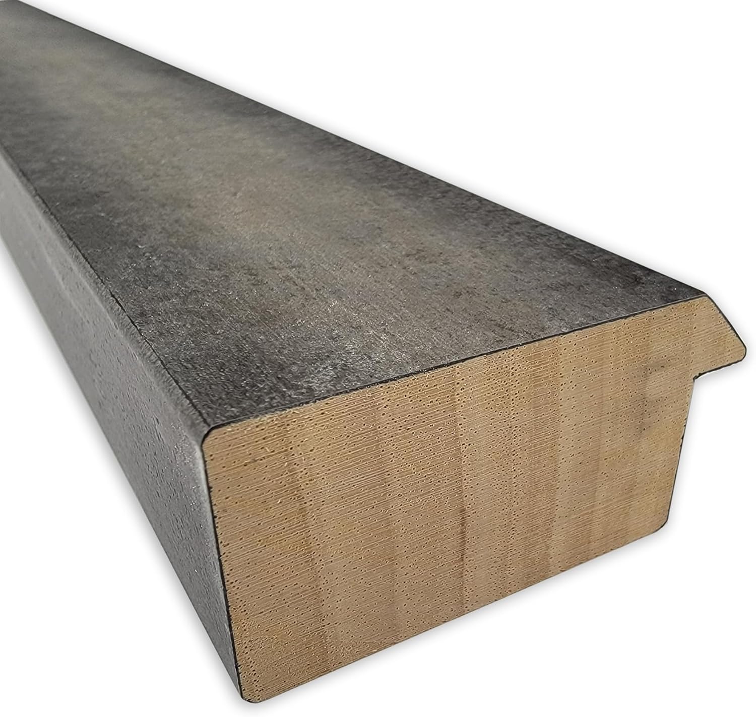 - WOOD FRAME DETAILS: The Burnished Concrete Frame is a matte grey frame with a flat surface, a satin finish angled inner edge, a visual appearance that mimics the industrial aesthetic of concrete and coloring that is lighter in the middle and darker on the edges. The frame is 2.5 in. wide and stands 1.25 in. off the wall.