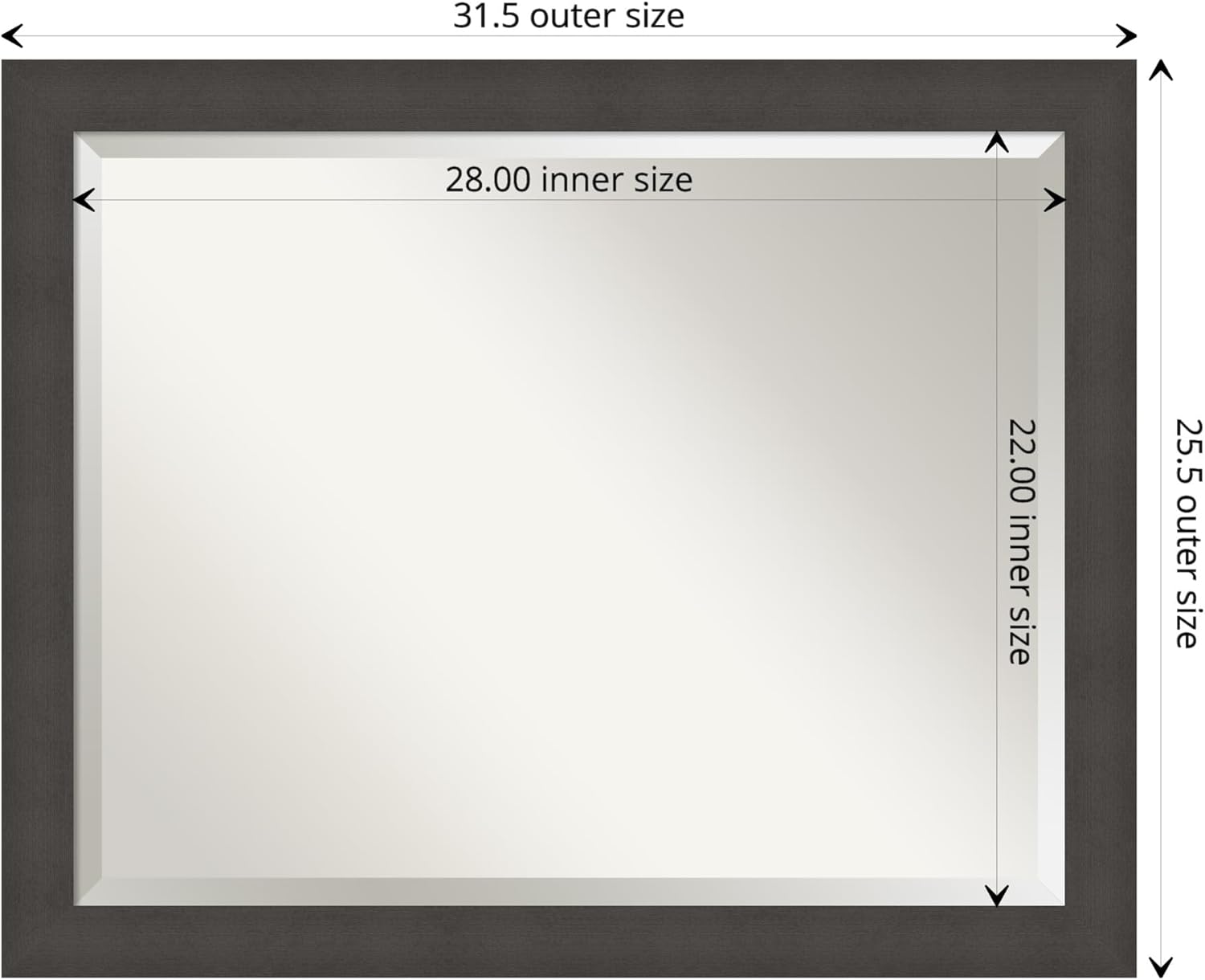 - MIRROR DETAILS: This mirror features premium glass for a clear, undistorted image and is finished with a beveled edge to give the glass a decorative touch. The overall size of this bathroom mirror measures 31.5 x 25.5 inches, including the frame. Its reflective area measures 28 x 22 inches.
