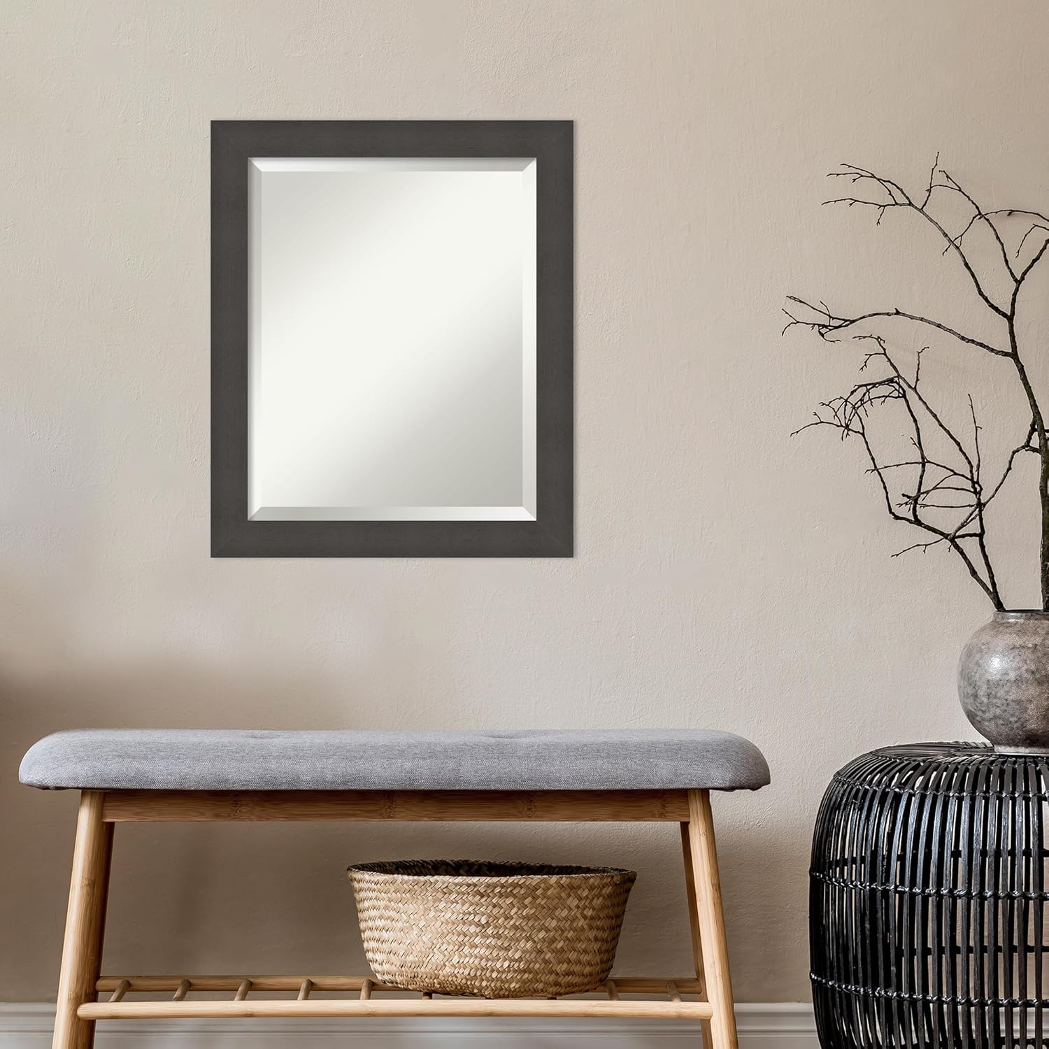 Amanti Art Silver Bathroom Mirror for Over Sink, 24x20 Blaine Light Pewter Narrow Rectangle Vanity Mirror, Small Modern Contemporary Frame, Hangs Horizonally and Vertically, Bathroom Wall Decor