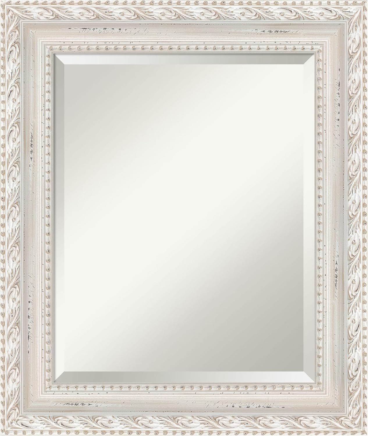 Amanti Art White Bathroom Mirror for Over Sink, 26x22 Opera Off White Rectangle Vanity Mirror, Small Traditional Wood Frame, Hangs Horizonally and Vertically, Bathroom Wall Decor, Beveled Edge from WI