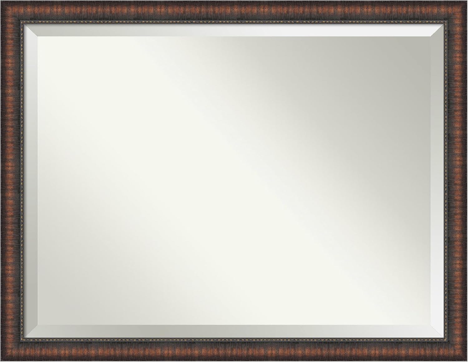 Amanti Art Brown Bathroom Mirror for Over Sink, 34x44 Caleb Brown Rectangle Vanity Mirror, X-Large Rustic Farmhouse Frame, Hangs Horizonally and Vertically, Bathroom Wall Decor, Beveled Edge