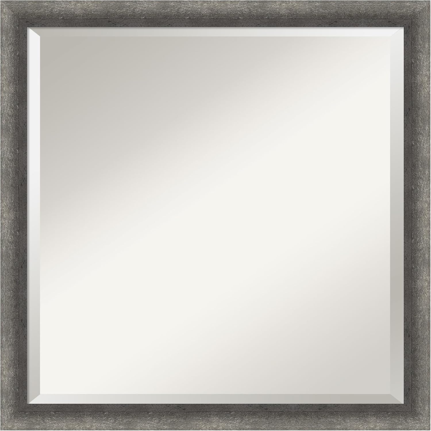 Amanti Art Grey Wall Mirror 22x22 Burnished Concrete Narrow Square Bathroom Mirror for Wall Decor Living Room, Medium Modern Contemporary Wood Frame, Hangs Horizonally and Vertically, Bathroom Decor