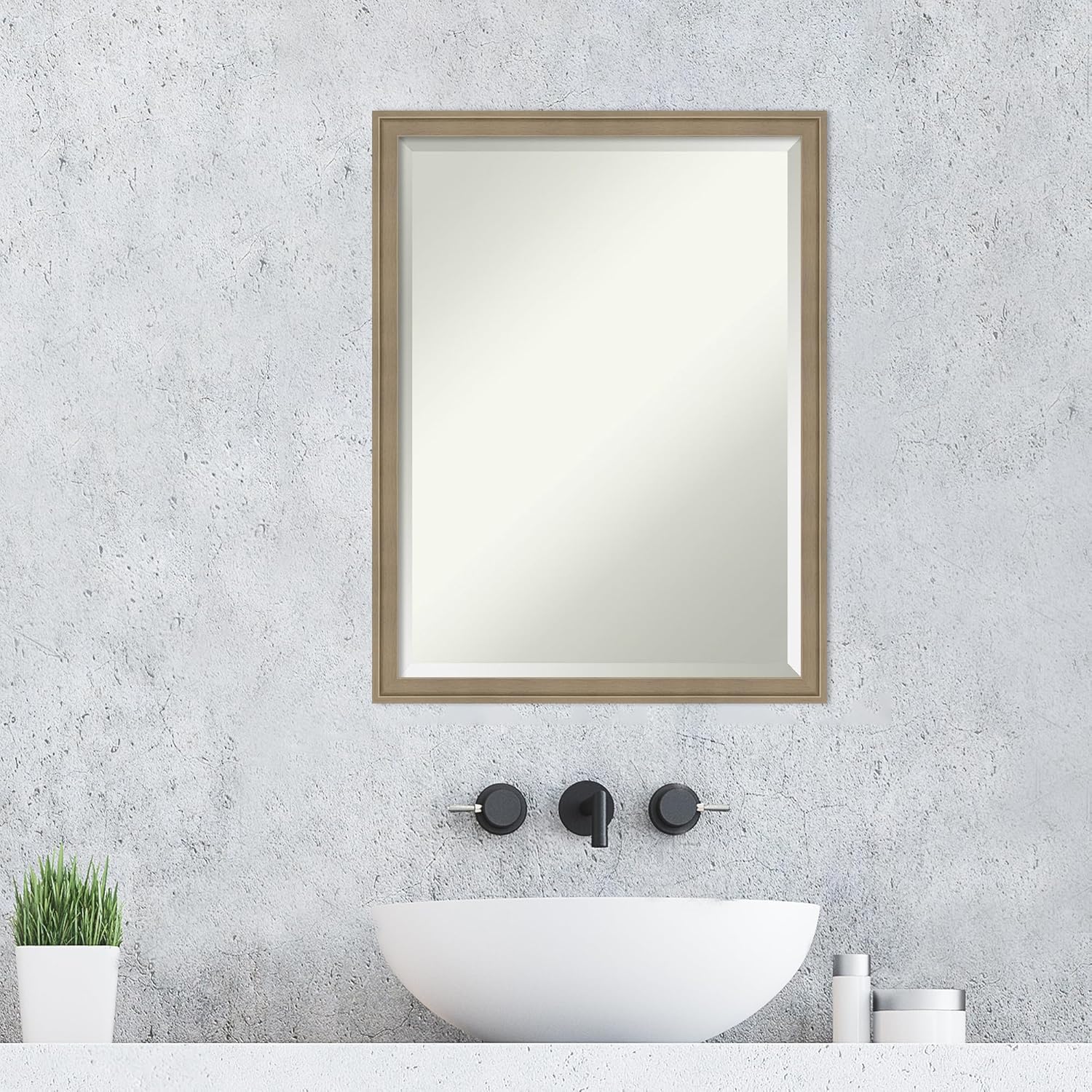 Amanti Art Brown Wall Mirror 26x20 Florence Light Brown Rectangle Bathroom Mirror for Wall Decor Living Room, Medium Casual Frame, Hangs Horizonally and Vertically, Bathroom Decor, Beveled Edge