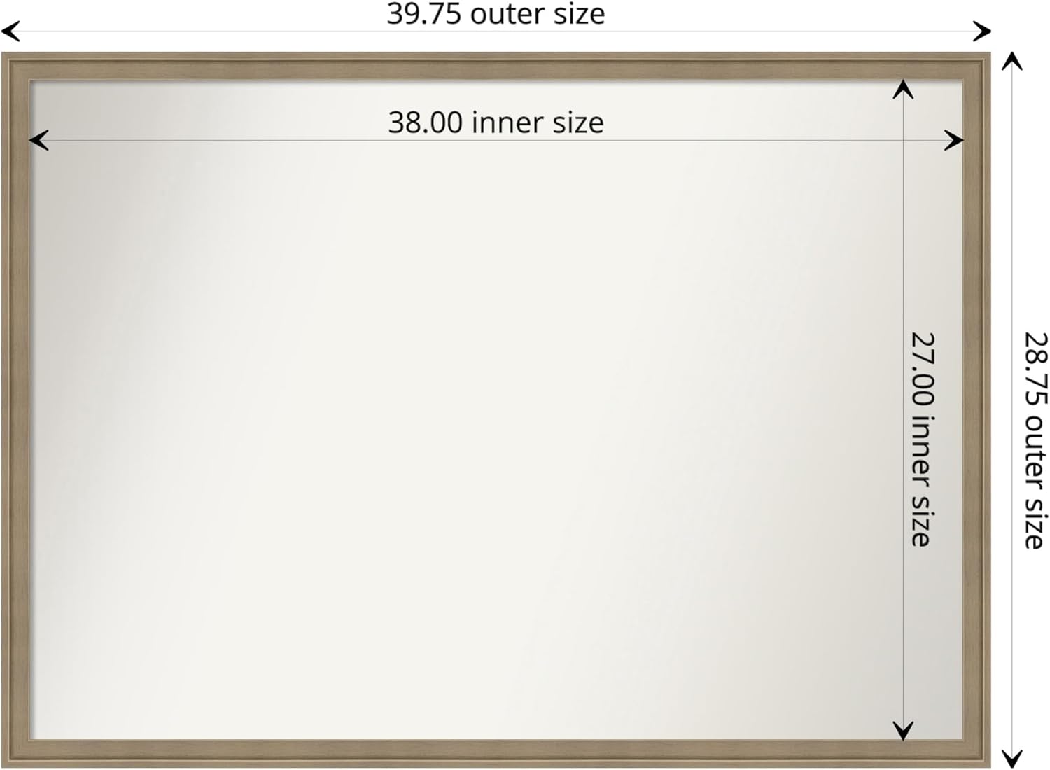 - MIRROR DETAILS: This mirror features premium glass for a clear, undistorted image and has a non-beveled surface to maximize the viewing area. The overall size of this bathroom mirror measures 39.75 x 28.75 inches, including the frame. Its reflective area measures 38 x 27 inches.