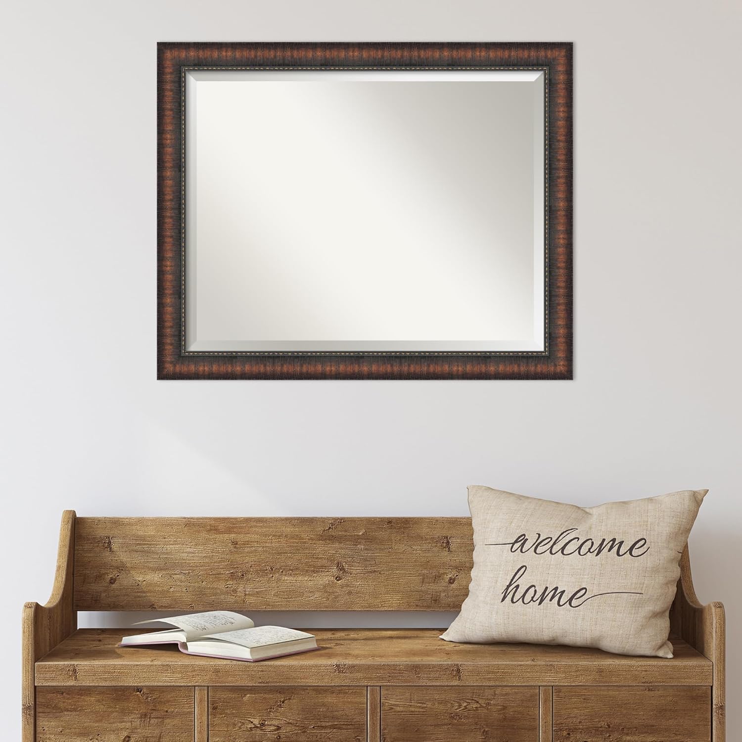 - MIRROR DETAILS: This mirror features premium glass for a clear, undistorted image and is finished with a beveled edge to give the glass a decorative touch. The overall size of this wall mirror measures exactly 32 x 26 inches, including the frame. Its reflective area measures 28 x 22 inches.