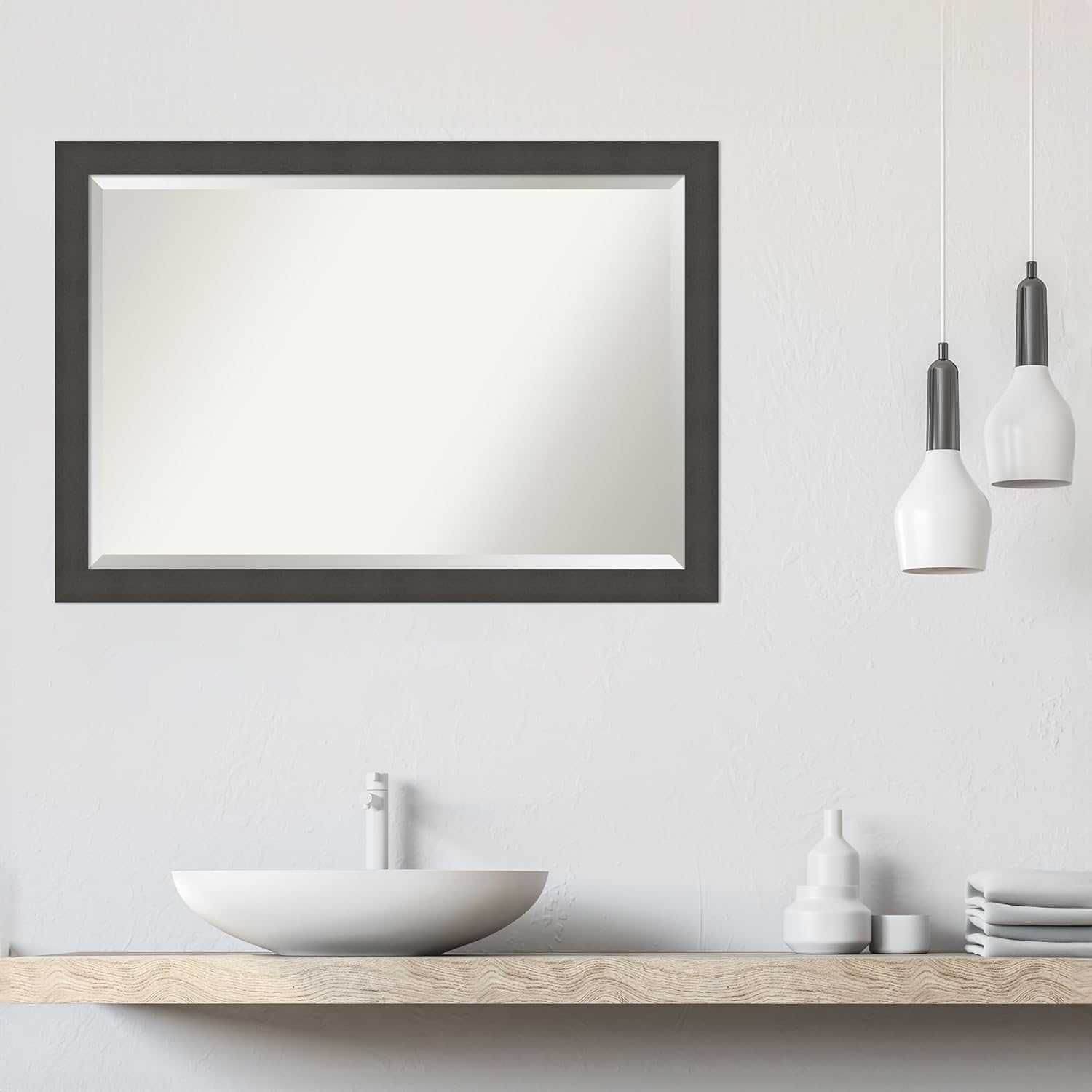 - MIRROR DETAILS: This mirror features premium glass for a clear, undistorted image and is finished with a beveled edge to give the glass a decorative touch. The overall size of this bathroom mirror measures 39.5 x 27.5 inches, including the frame. Its reflective area measures 36 x 24 inches.