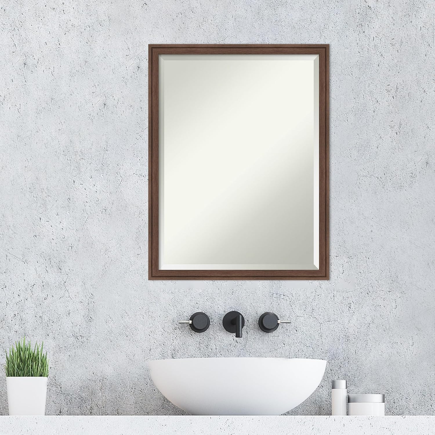 Amanti Art Brown Wall Mirror 26x20 Florence Medium Brown Rectangle Bathroom Mirror for Wall Decor Living Room, Medium Casual Frame, Hangs Horizonally and Vertically, Bathroom Decor, Beveled Edge