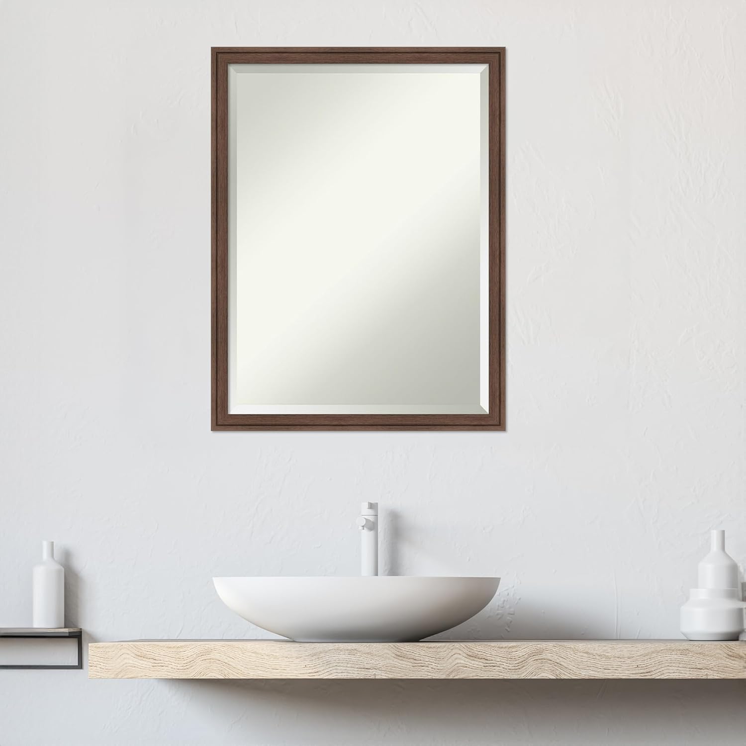 Amanti Art Brown Bathroom Mirror for Over Sink, 26x20 Florence Medium Brown Rectangle Vanity Mirror, Medium Casual Frame, Hangs Horizonally and Vertically, Bathroom Wall Decor, Beveled Edge