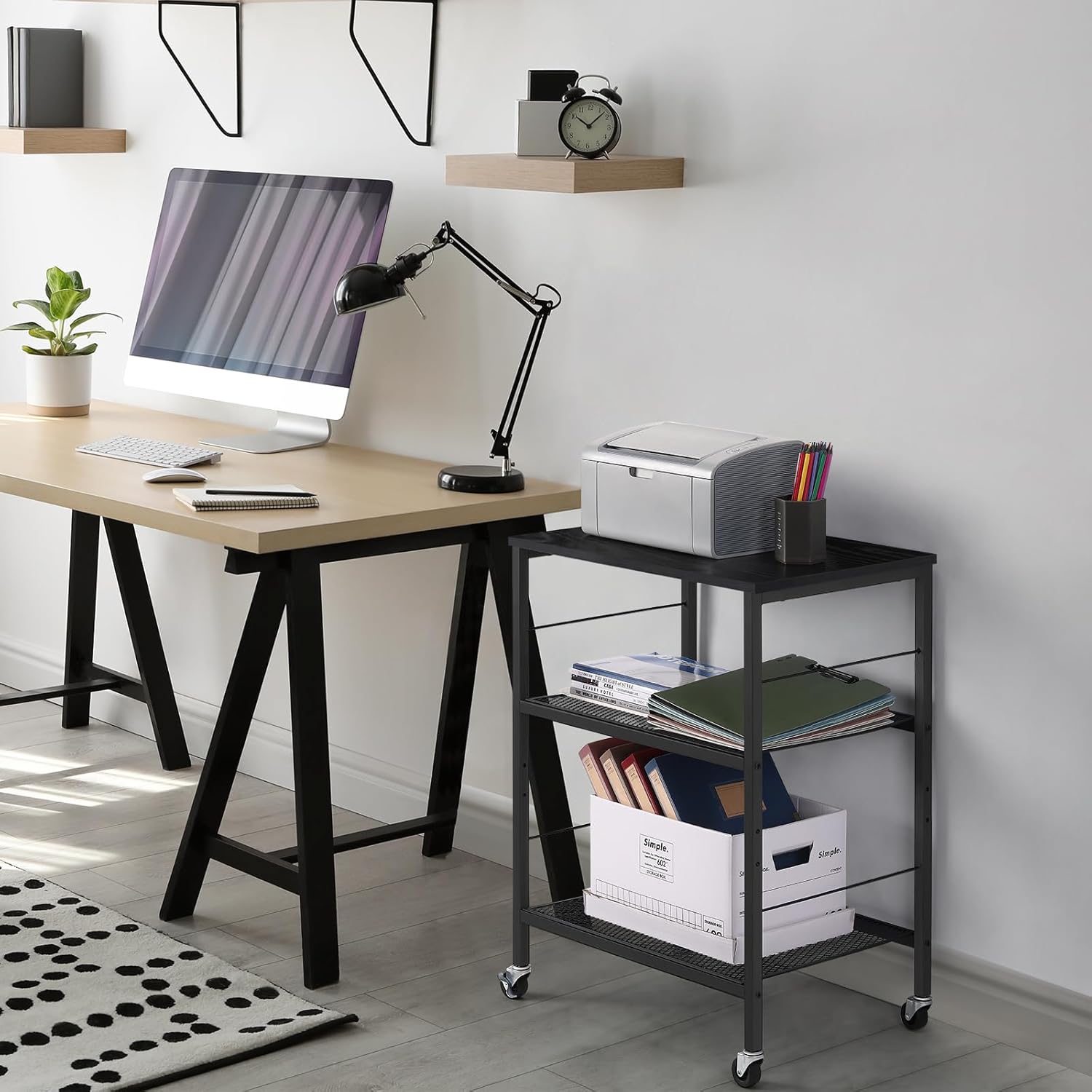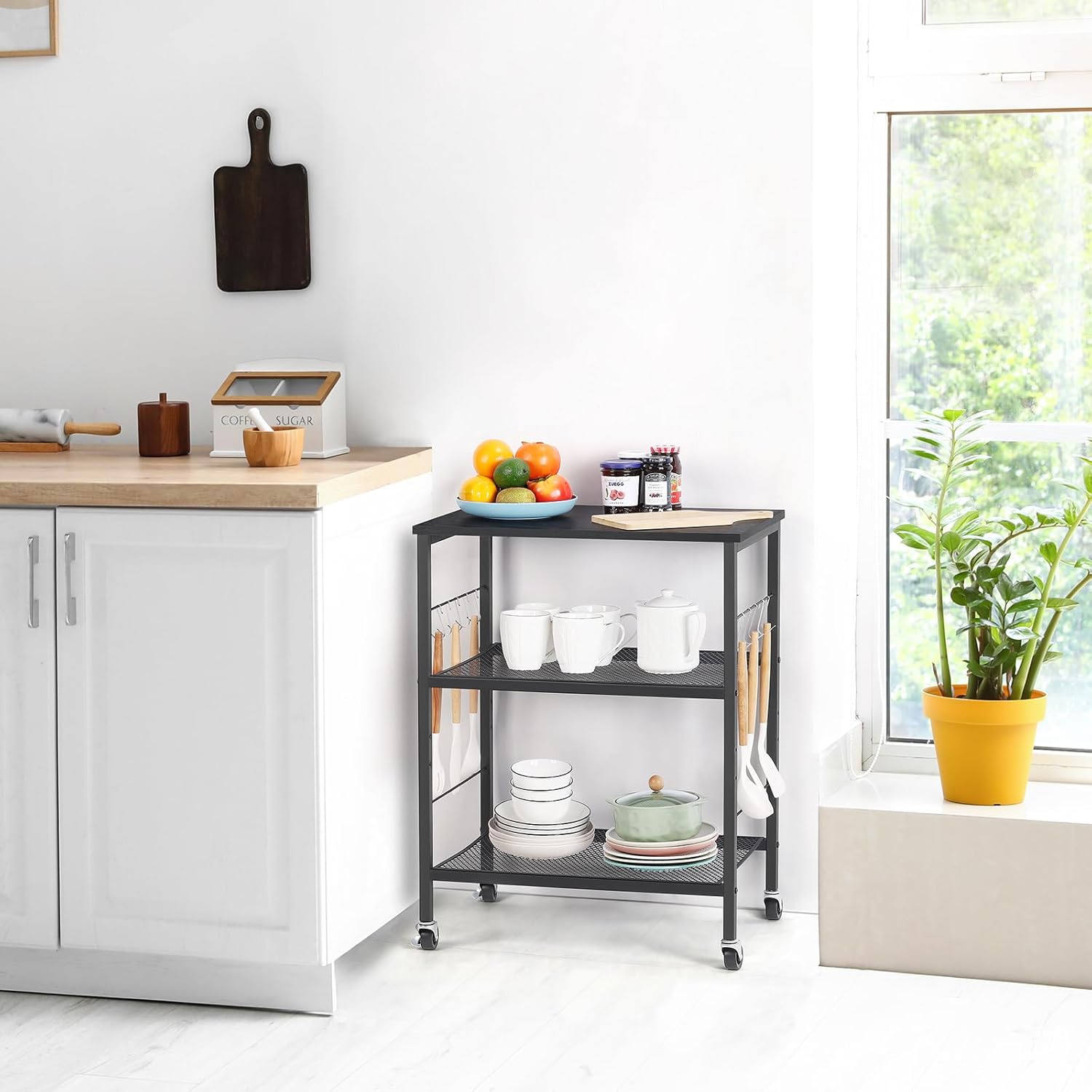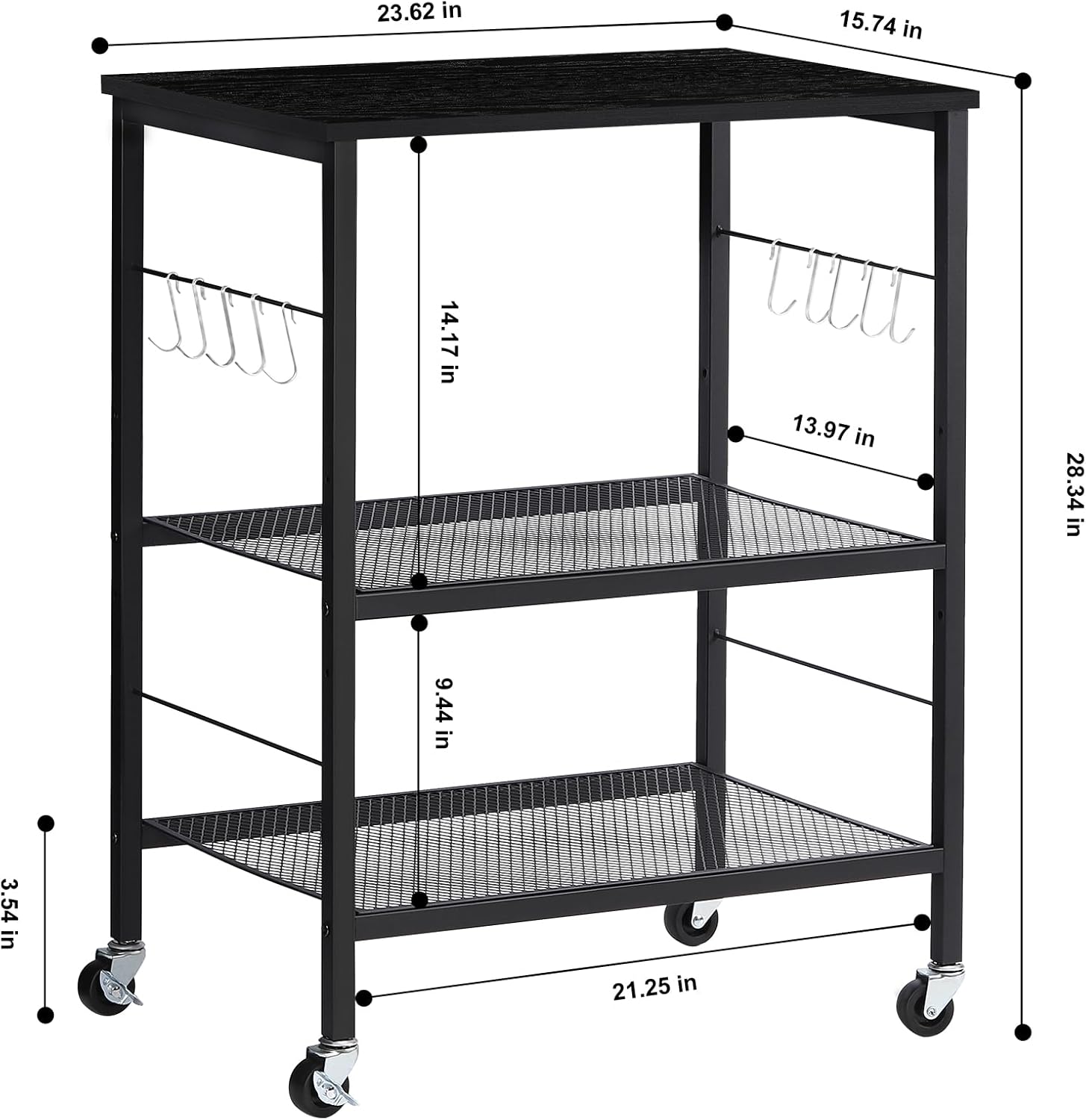 LIANTRAL Rolling Cart, 3-Tier Utility Microwave Bar Coffee Cart Kitchen Storage Shelf On Wheels, Black Large Side End Table Nightstand for Home Office
