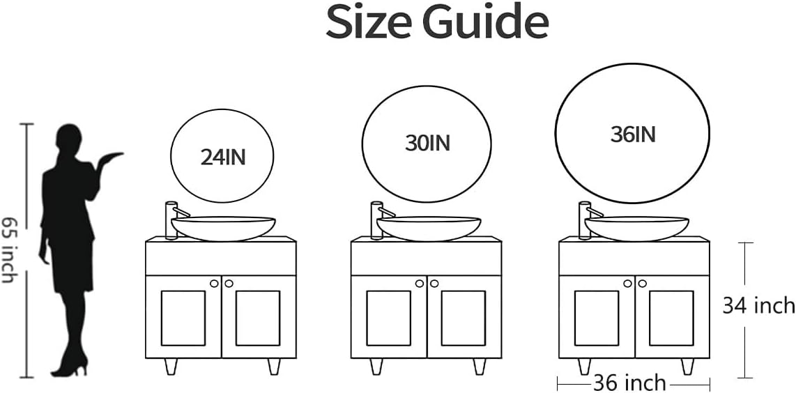 - 【Modern Design】Available in 3 Size & 4 Colors, offering Brushed Black /Titanium /Gold /Bronze, 24" / 30" / 36" in diameter. It is an ideal choice for bedroom, living room, bathroom, hallway or any space that needs a touch of minimalist comfort style.