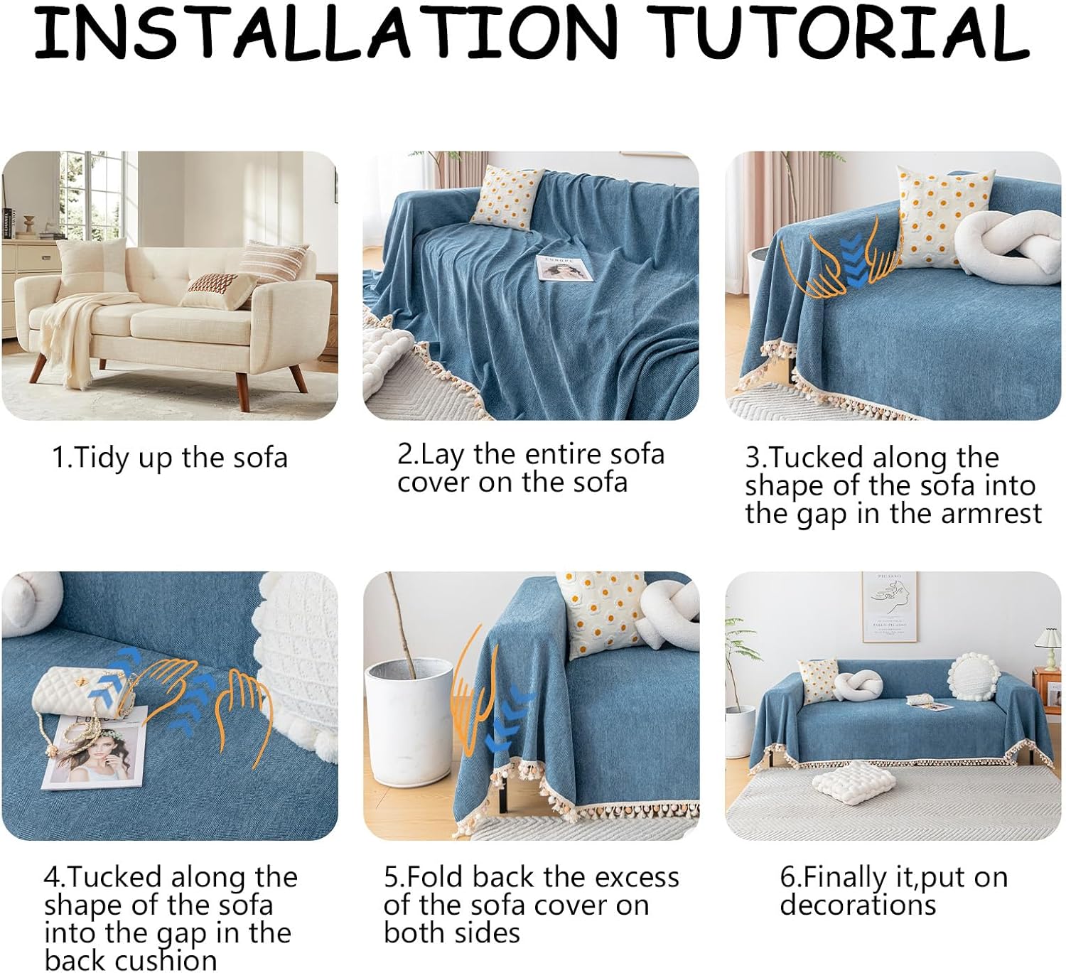 - INSTALLATION AND WASHING: Compared to the stretch slipcovers it is much easier, just take you about 10 seconds (throw over your couch, tuck it in between the cushions and the protector will stay in place). Machine washable, and wash with cold water, gently wash, using mild laundry detergent, avoid using of detergent with bleach ingredients.