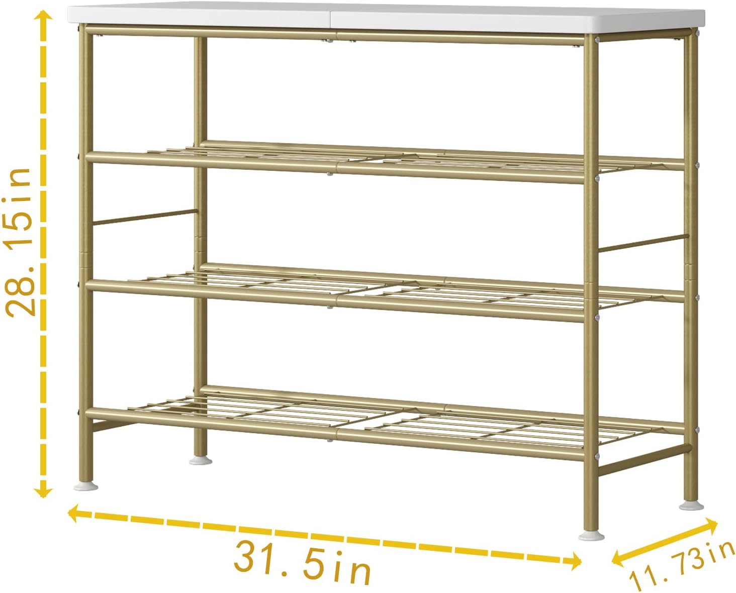 Shoe Rack Organizer 4 Tier for Closet Entryway Free Standing Metal Storage Shoe Shelf with MDF Top Board,Gold