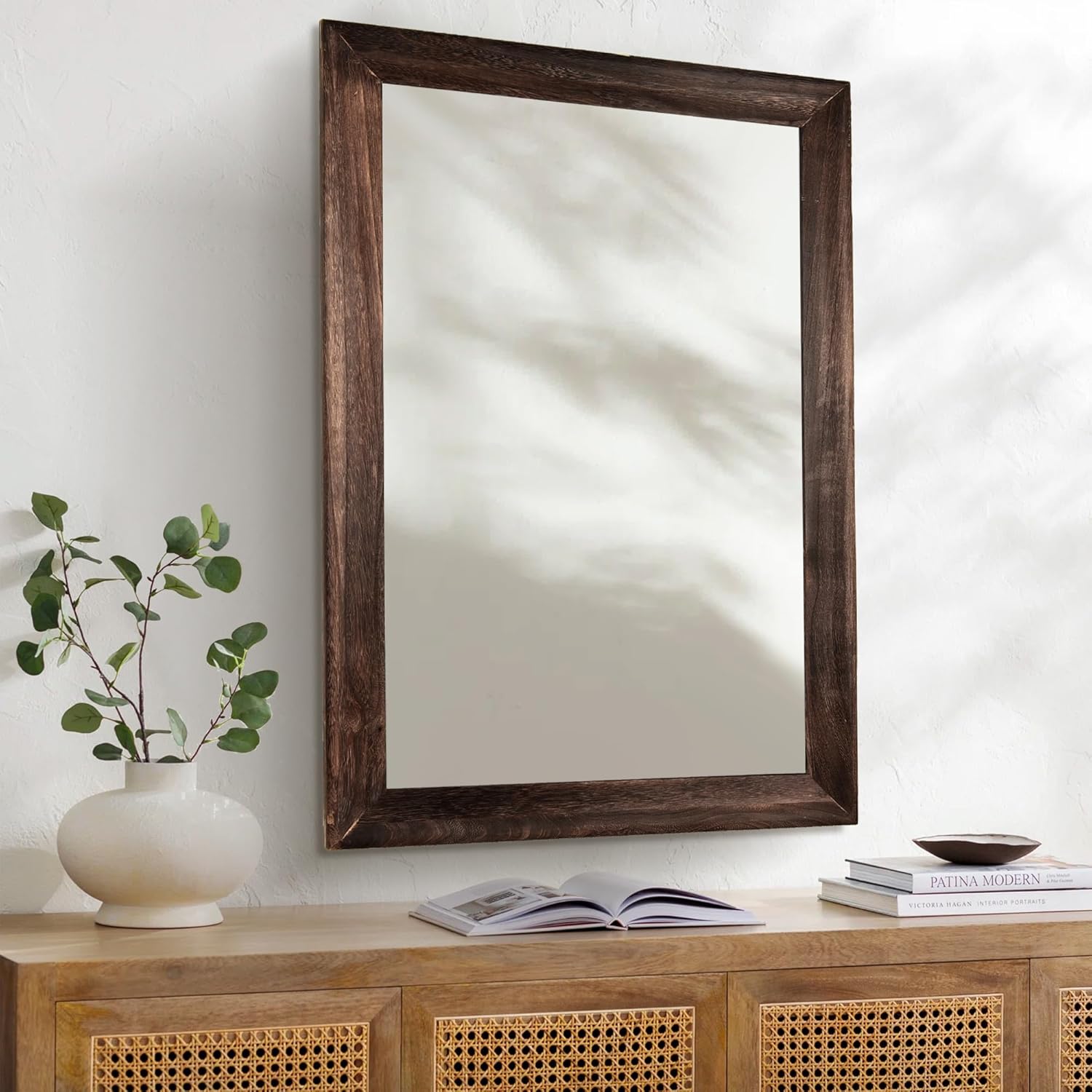 - [Simple Color] It is a versatile color that can be used to create a variety of styles,from modern and minimalist to traditional and rustic.Whether used as a bold statement piece or a subtle accent,vintage brown mirror adds warmth and character to any room it's in.
