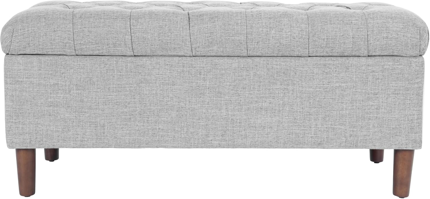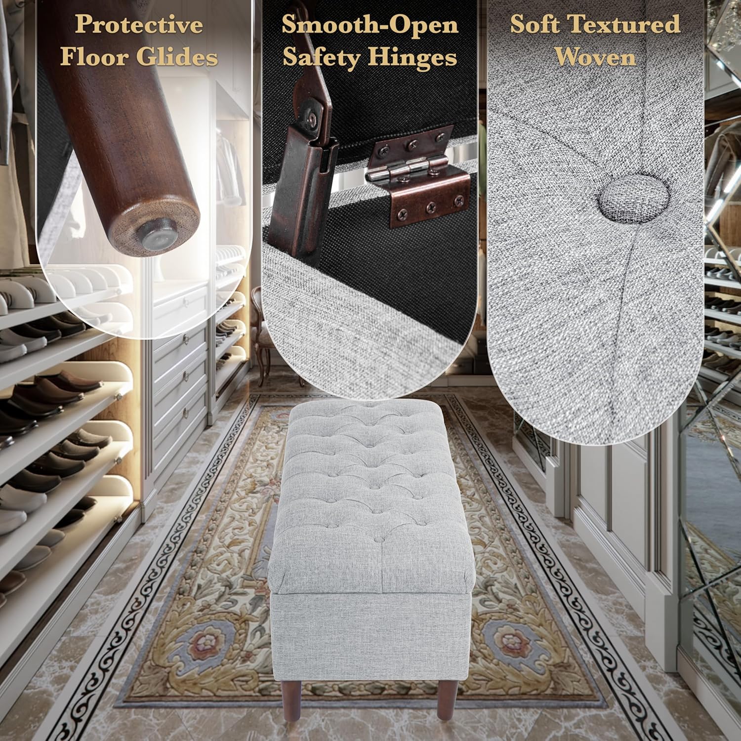 - STORAGE OTTOMAN BENCH: This beautiful Tufted Ottoman Bench with Storage features a hinged lidand is perfectly completed with wood legs to create a bold impact for any room