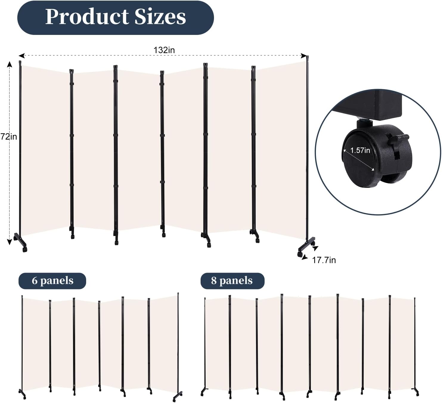 Room Divider Folding Privacy Screens with Lockable Wheels, 132'' Partition Room Dividers Freestanding Room Divider Fabric Panel for Room Separation, Wall Divider for Home Office Bedroom Dorm Decor