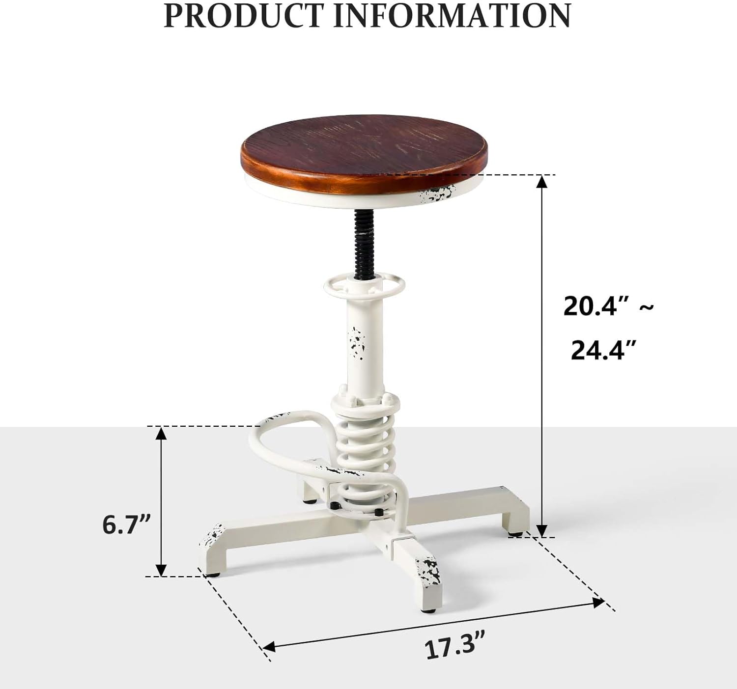 Topower Industrial Retro Vintage Farm Wooden Seat Tractor Stool Kitchen Swivel Height Adjustable bar Stool Antique White