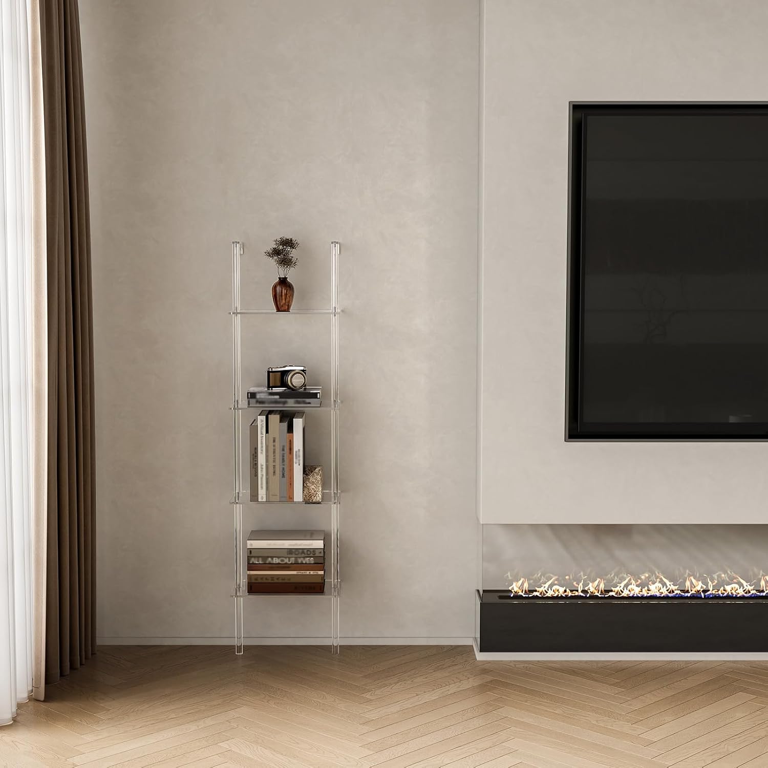 - Modern Aesthetics and Durability: Elevate your interior with the modern aesthetics of our acrylic ladder shelf, seamlessly blends with various decor styles. The transparent nature of acrylic adds a modern and airy feel to any room. Plus, the sturdy construction ensures long-lasting durability, making it a reliable addition to your home or office.