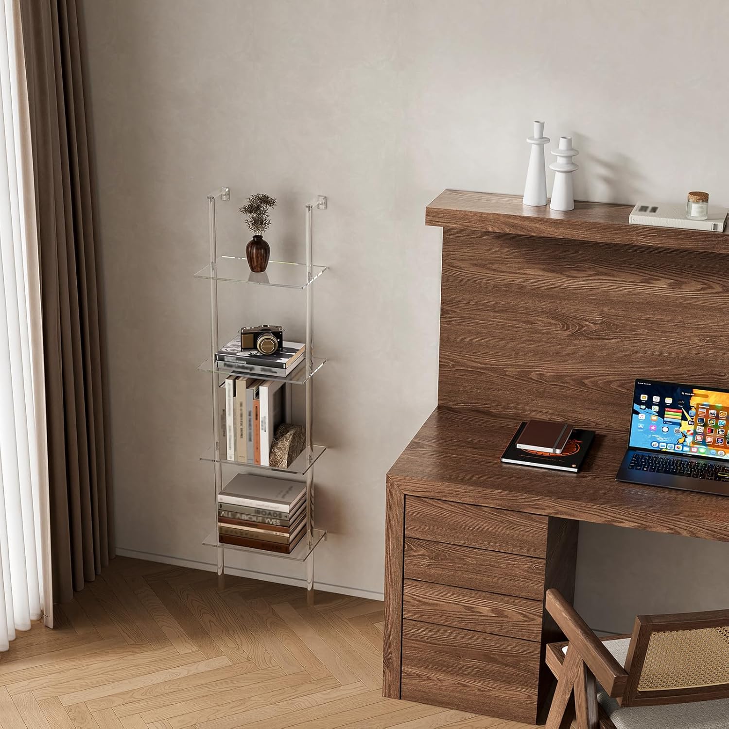 - Premium Acrylic Material: Constructed with premium acrylic, our ladder bookshelf offers a unique blend of sophistication and durability. Never worry about the peeling veneer.