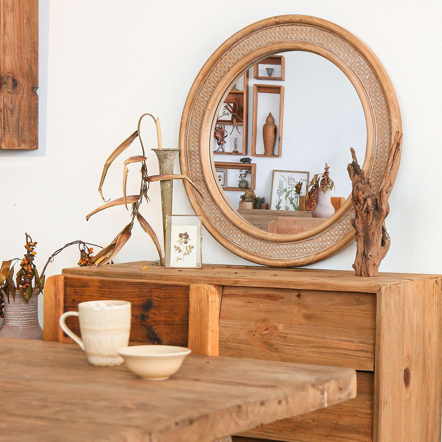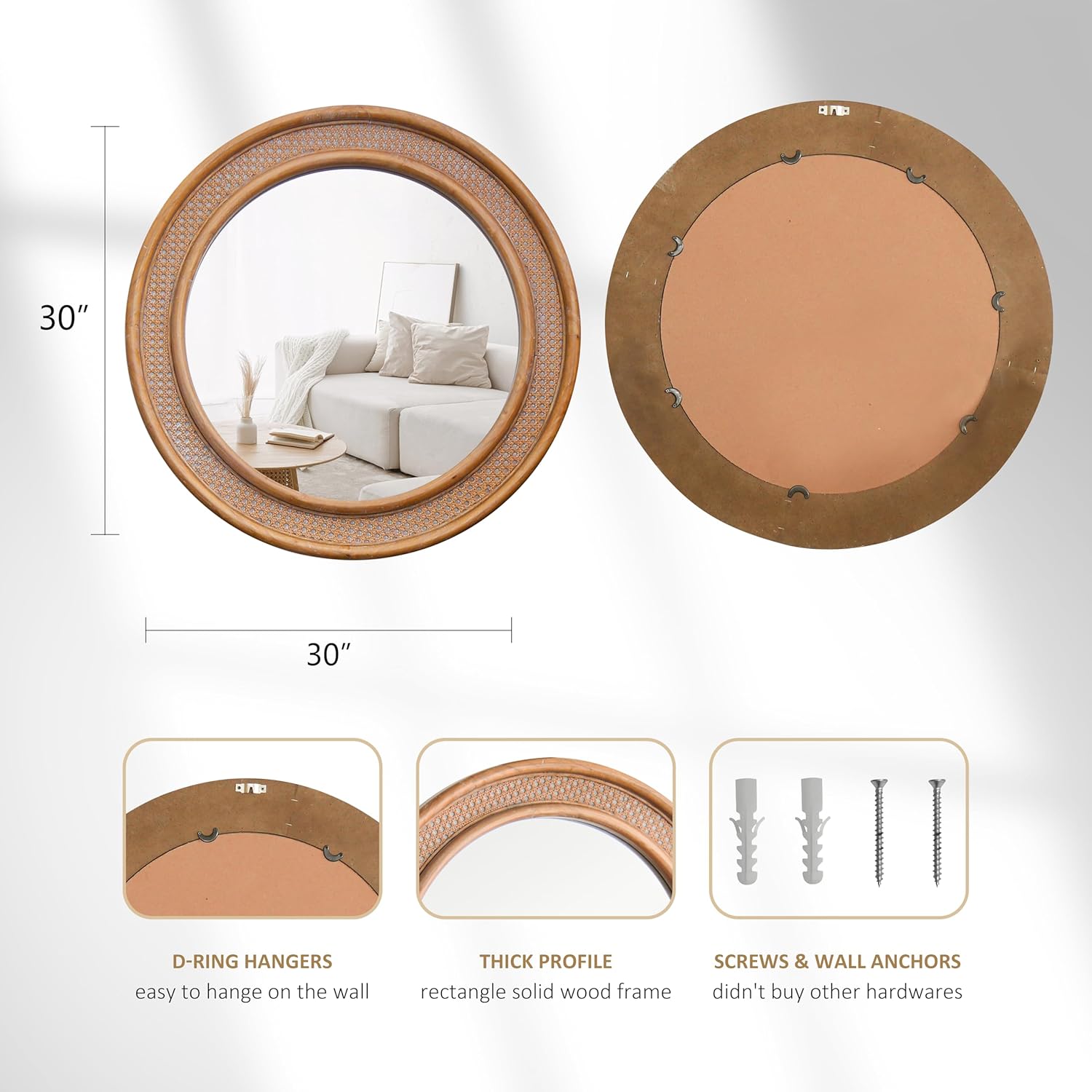 - ššØš„š¢š ššØšØš š š«šš¦š - Crafted with utmost elegance, our bamboo mirror boasts a genuine solid wood frame that is meticulously wrapped in intricately woven rattan.