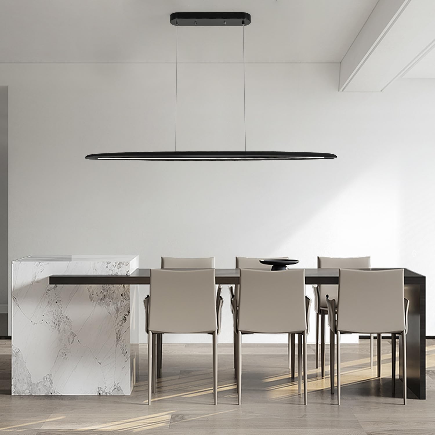 - ❤【Minimalist Pendant LED Linear Chandelier for Kitchen】This sleek design illuminating the space with a single long rail powered with state of the art LED technology. The rest of the piece is kept simple, hung with cables from a matching rectangular canopy. Contemporary in both style and application, the minimalism aesthetic paired with energy efficiency creates a truly modern lighting option.Making your cooking and dining experiences more intimate with upscale lighting from the 59" Linear LED Pendant.