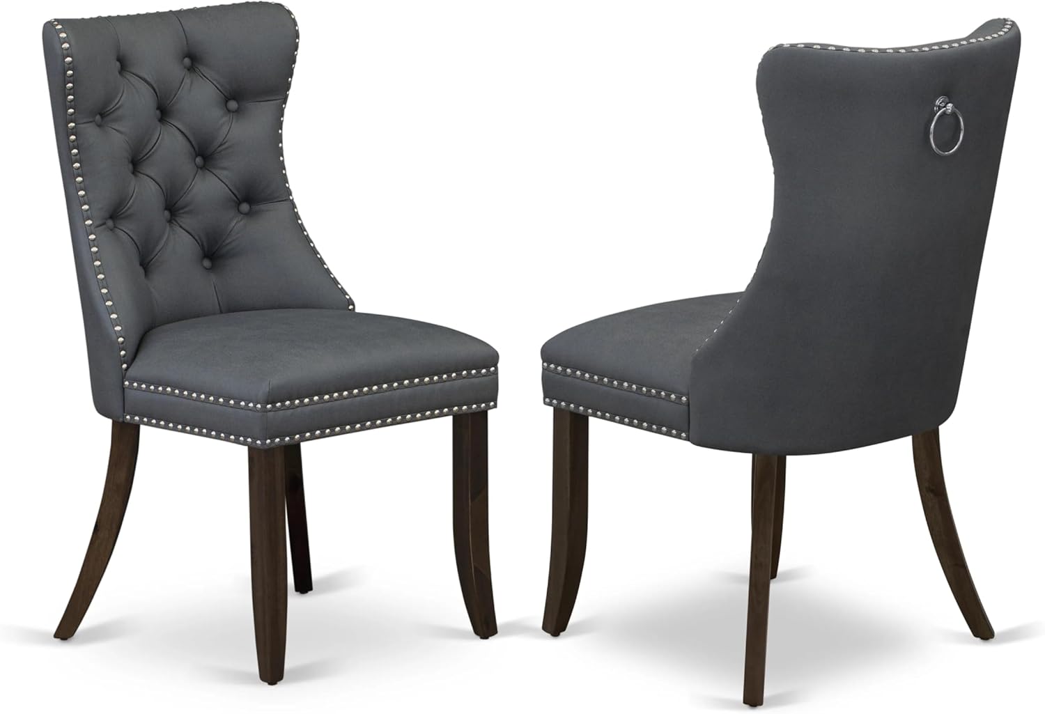 - CHAIRS SEAT MATERIAL: These kitchen chairs are upholstered with a Polyester Fabric Seat and feature a Button Tufted Chair Back, enhancing the kitchen's visual appeal. The wide seating area ensures added comfort, and the modern Button Tufted Chair Back design elevates the beauty of any dining space. These dining room chairs effortlessly introduce a touch of modern elegance to any home.