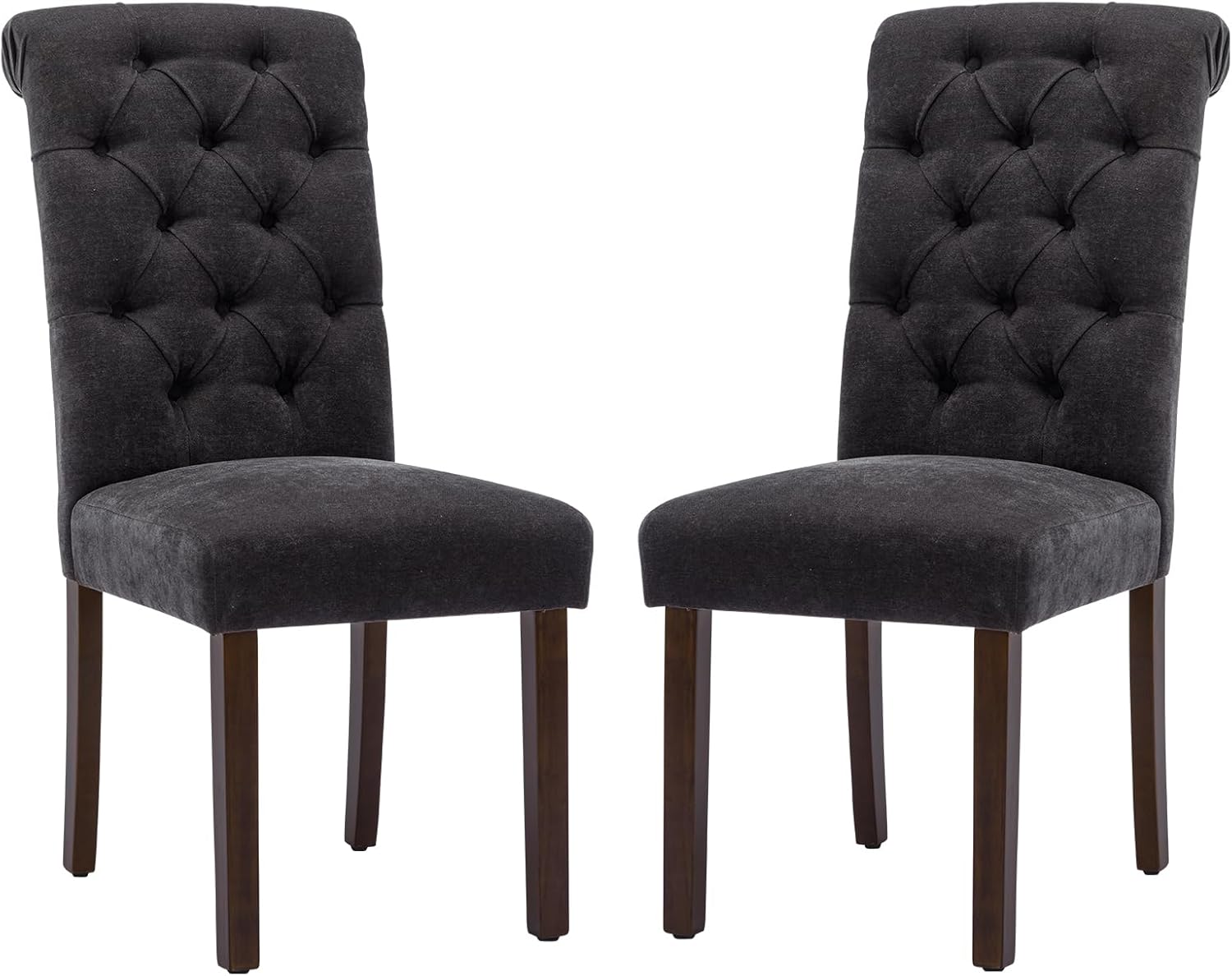 - Ergonomic and High-Back Tufted Cushion: The slightly curved high backrest with a roll-back top of these parsons chairs is ergonomically designed to fit your body shape, effectively protecting your waists and back and relieving the fatigue of a long time sitting. They will fit perfectly on your dining table.