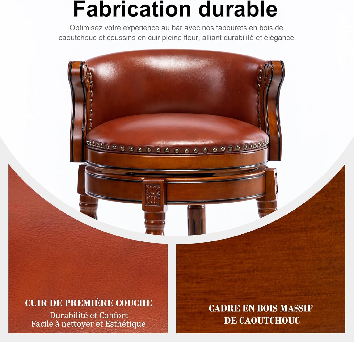Cow top Leather Wooden Bar Stools, 26" Counter Height Bar Chair with Back, 180 Degrees Swivel Barstools Chair for Home Kitchen Counter,Dining Room, Restaurant