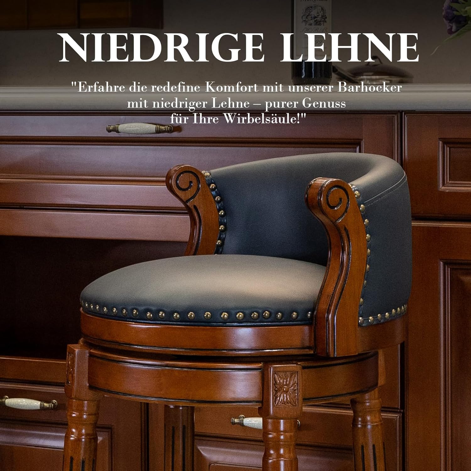 Cow top Leather Wooden Bar Stools, 26" Counter Height Bar Chair with Back, 180 Degrees Swivel Barstools Chair for Home Kitchen Counter,Dining Room, Restaurant
