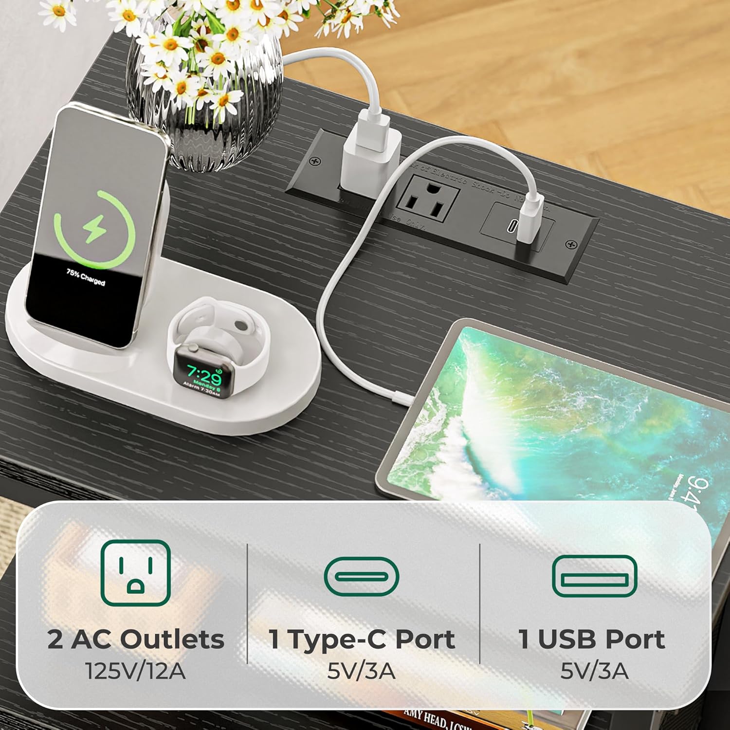 - 【Nightstand with Charger Station】More close charging spots, more handy uses. Equipped with 1 USB port, 1 USB-C port, and 2AC outlets on the tabletop, this fabric dresser allows you to effortlessly charge your devices or lamps overnight, ensuring you wake up worry-free with no low battery concerns. Plus: Contain patent pending drawer slide