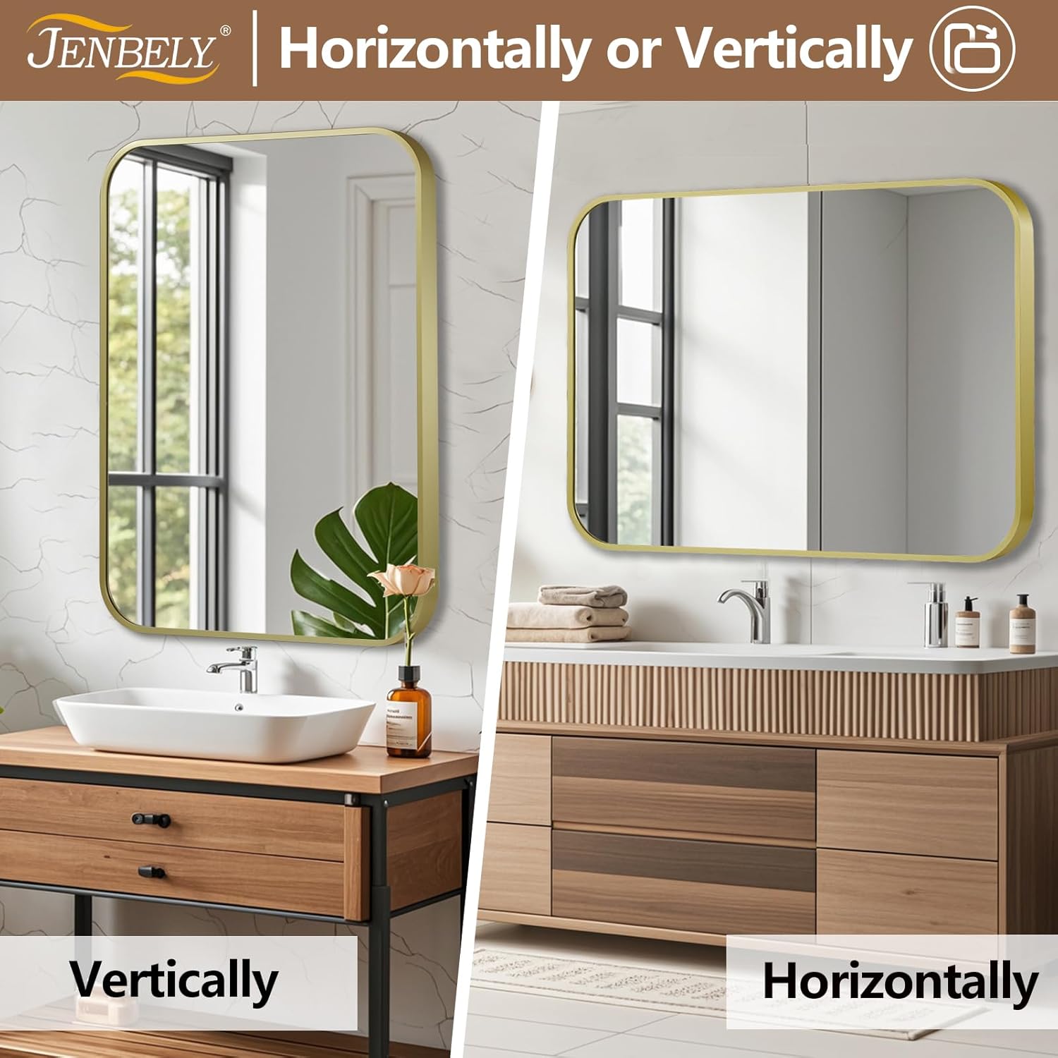 - 【MODERN EUROPEAN STYLE】Our 20"x28" gold bathroom mirror adopts a simple line design and classic brushed metal frame. The corner details have been hand-polished many times, smooth and soft, ensuring the practicality of the design and the unity of modern aesthetics. It can be perfectly integrated with various home styles, which is an ideal choice for minimalist and home decor enthusiast.