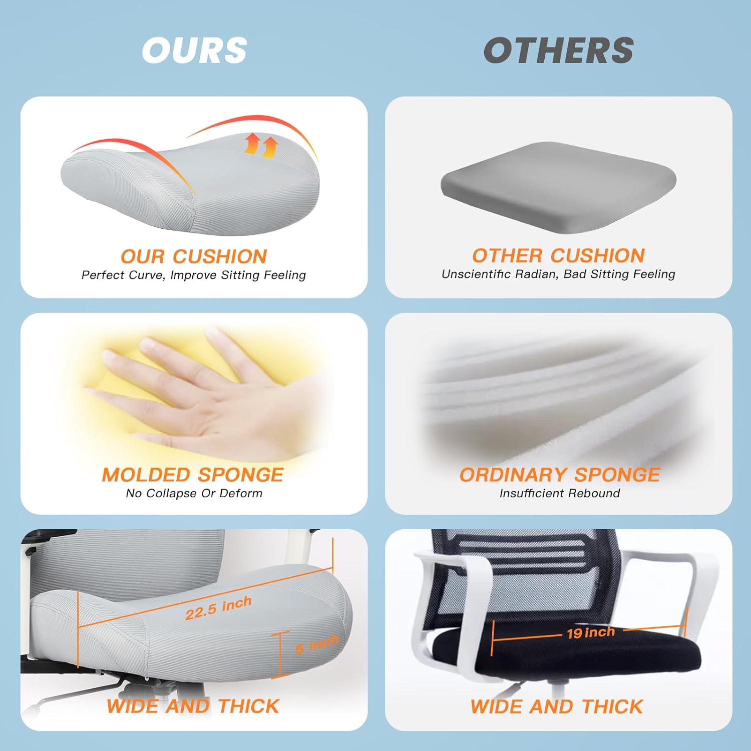 - 【BUILT FOR COMFORT】The seat cushion of FAMSINGO executive office chair is filled with high resilience sponge which is designed for the curve of human’s butt, providing soft but supportive sitting feeling. The comfortable office chair uses a breathable mesh design to prevent the accumulation of sweat and heat.